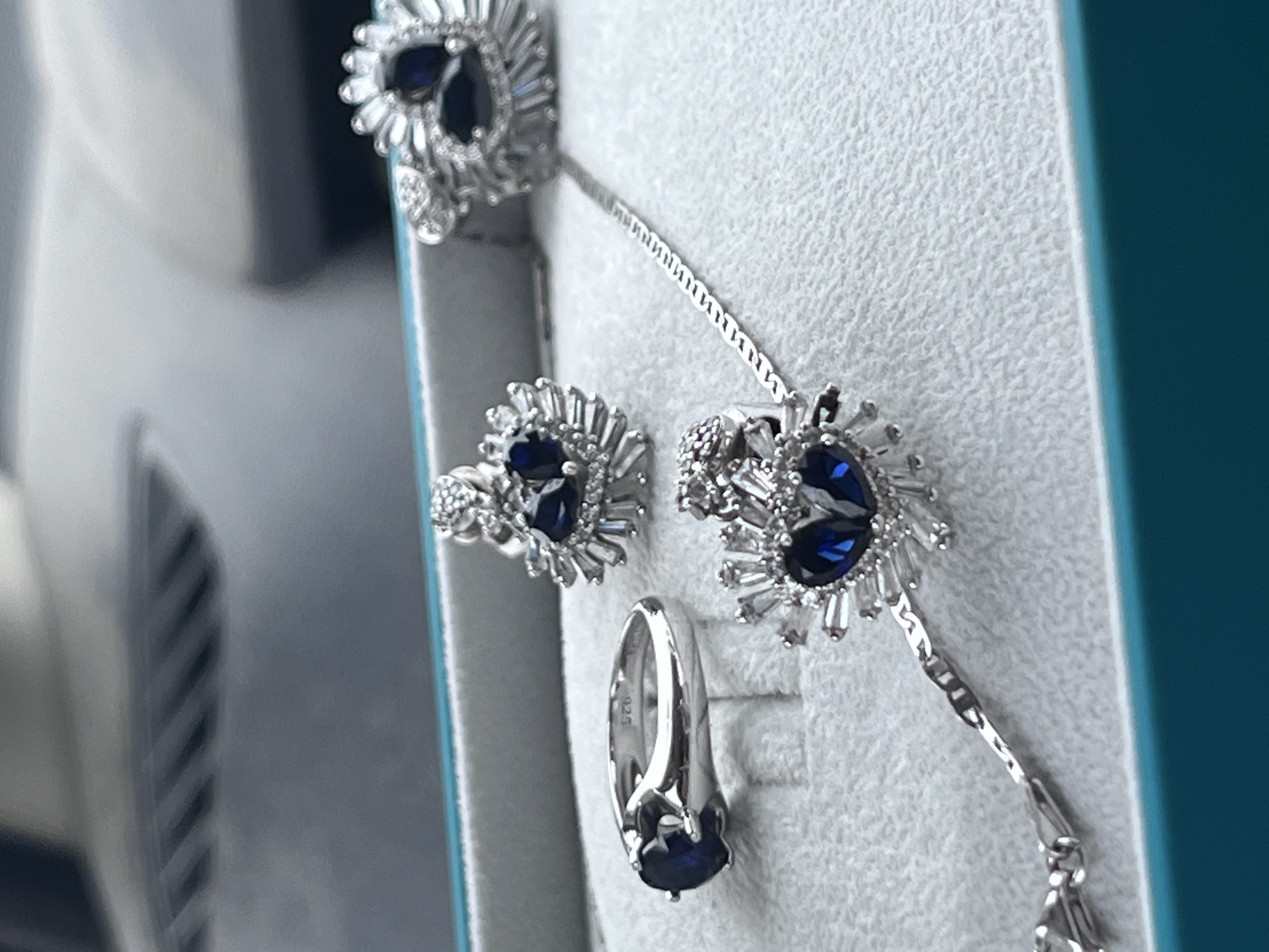 طقم فضه 925 استخدام قليل جداً مطعم حجر الزفير والزركون قص الالماس موضح ختك الفضه 925 لايوجد اي ملاحظات سليم %*% ** كل قطعه مختومه 925 ختم الفضه**
