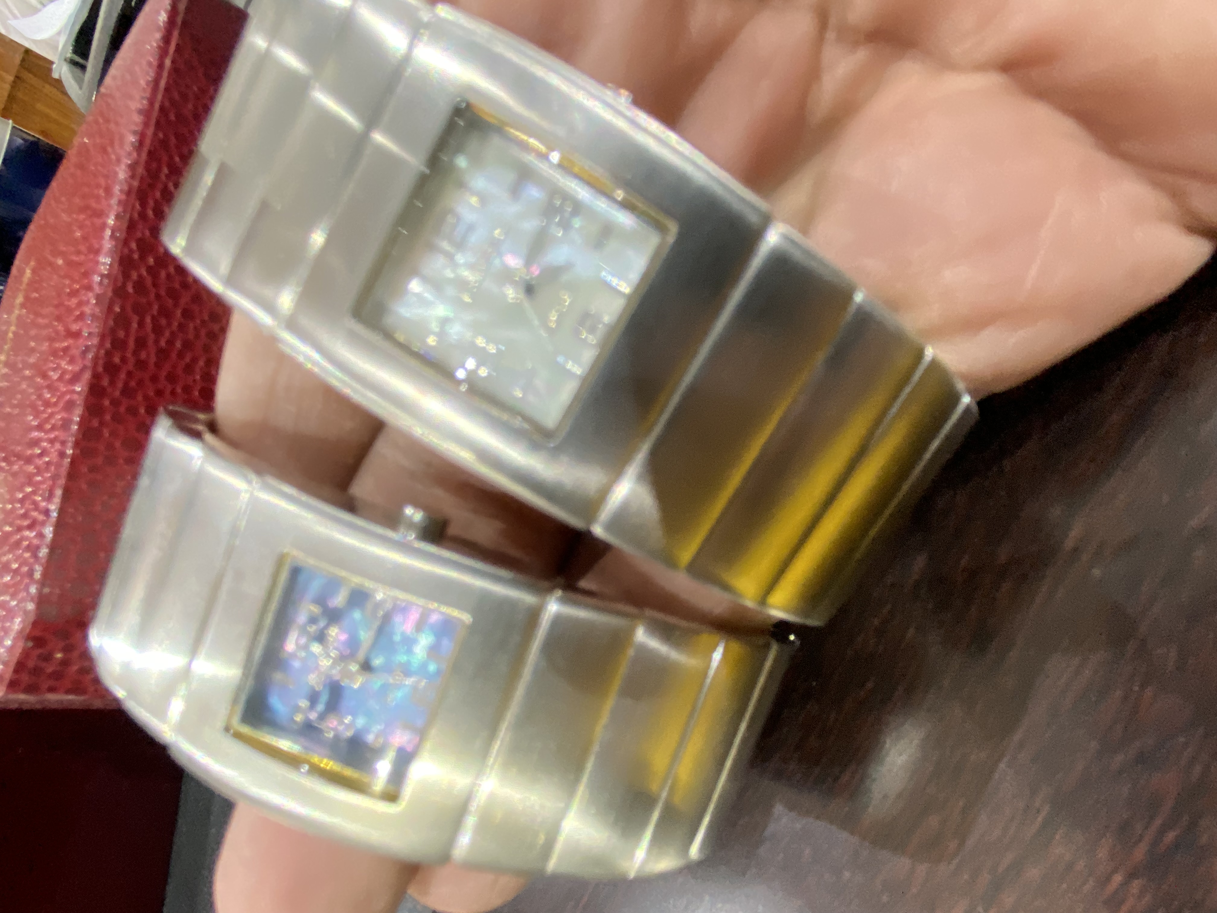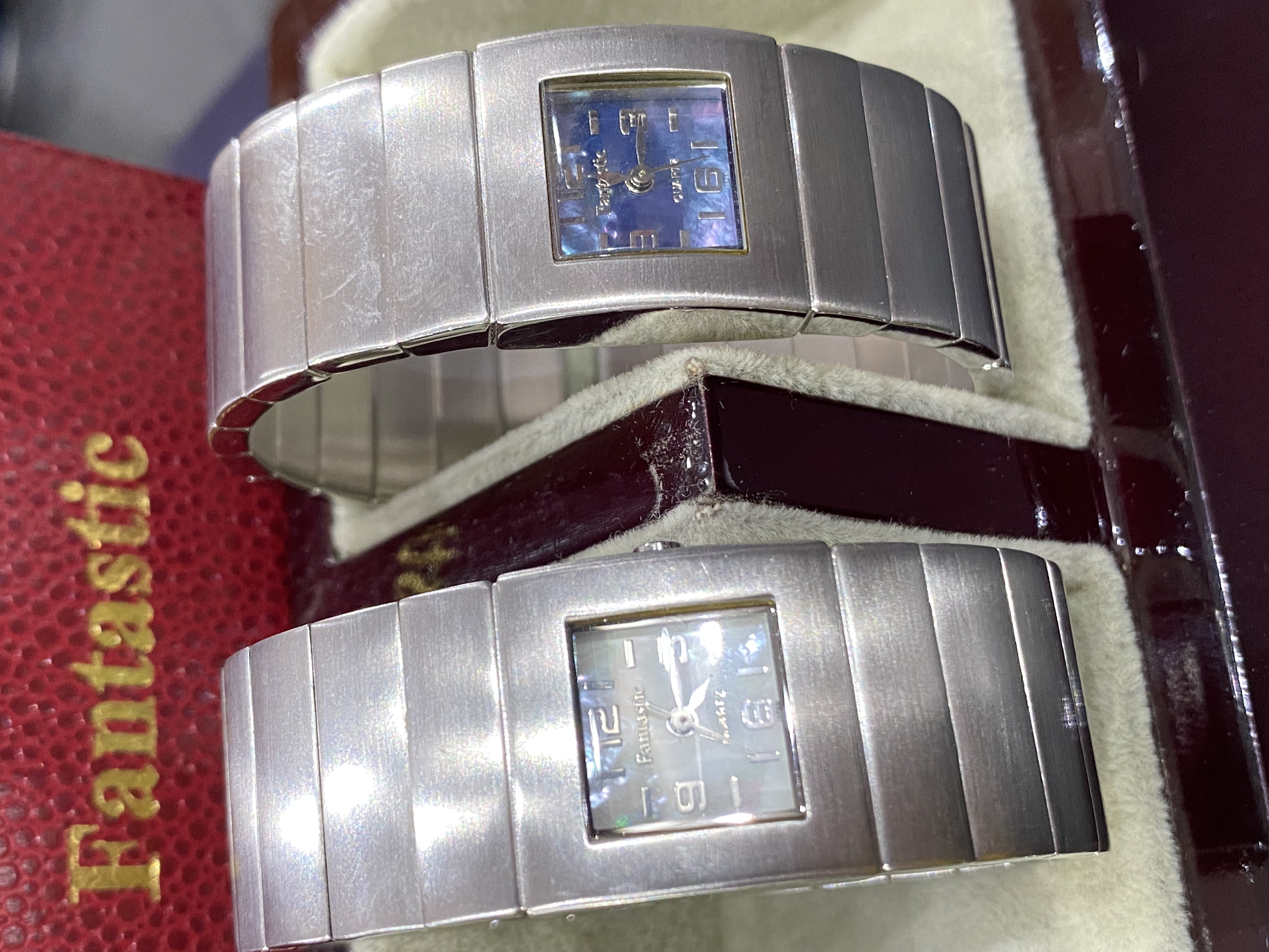 ساعات إسوارة ماركة فانتاستيك تيتانيوم بلونين للميناء - الازرق الصدفي الجديد والأبيض الصدفي - ضد الماء - مقاومة للخدش.