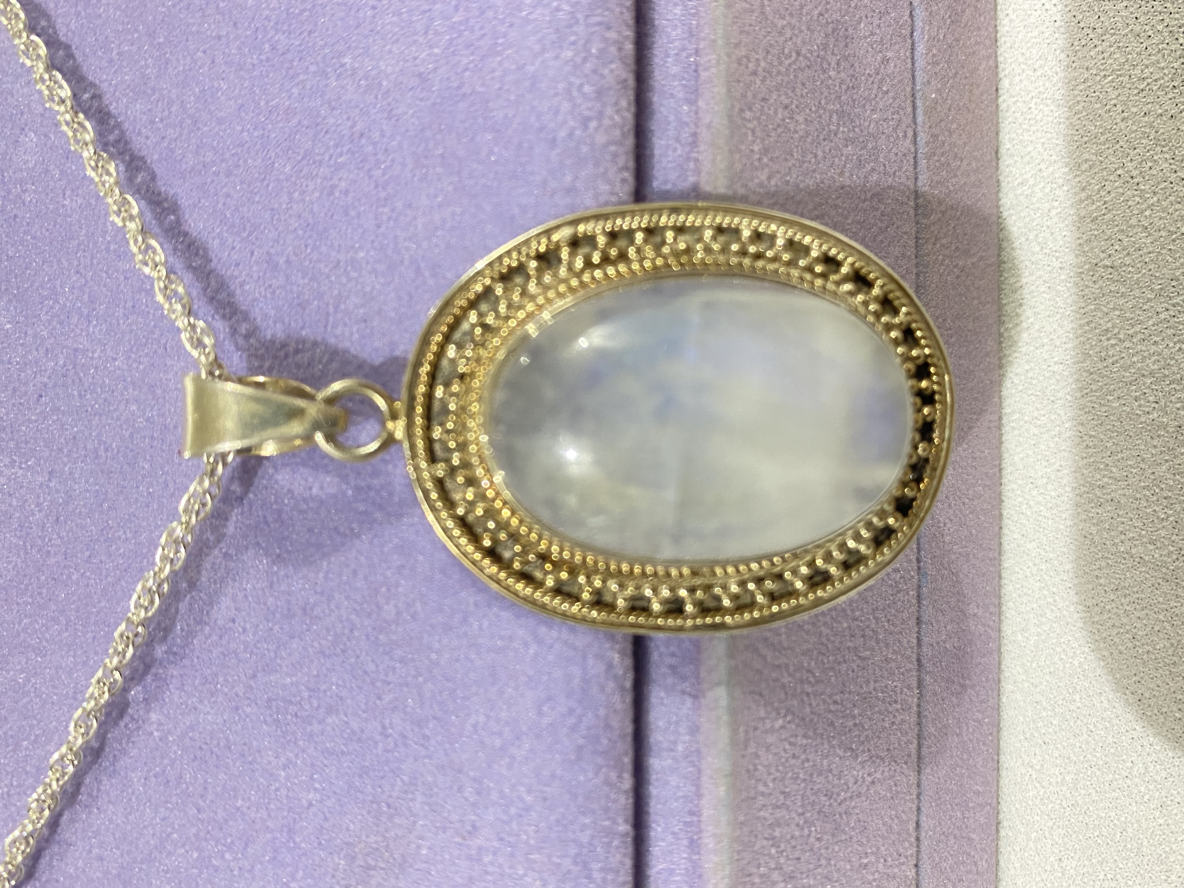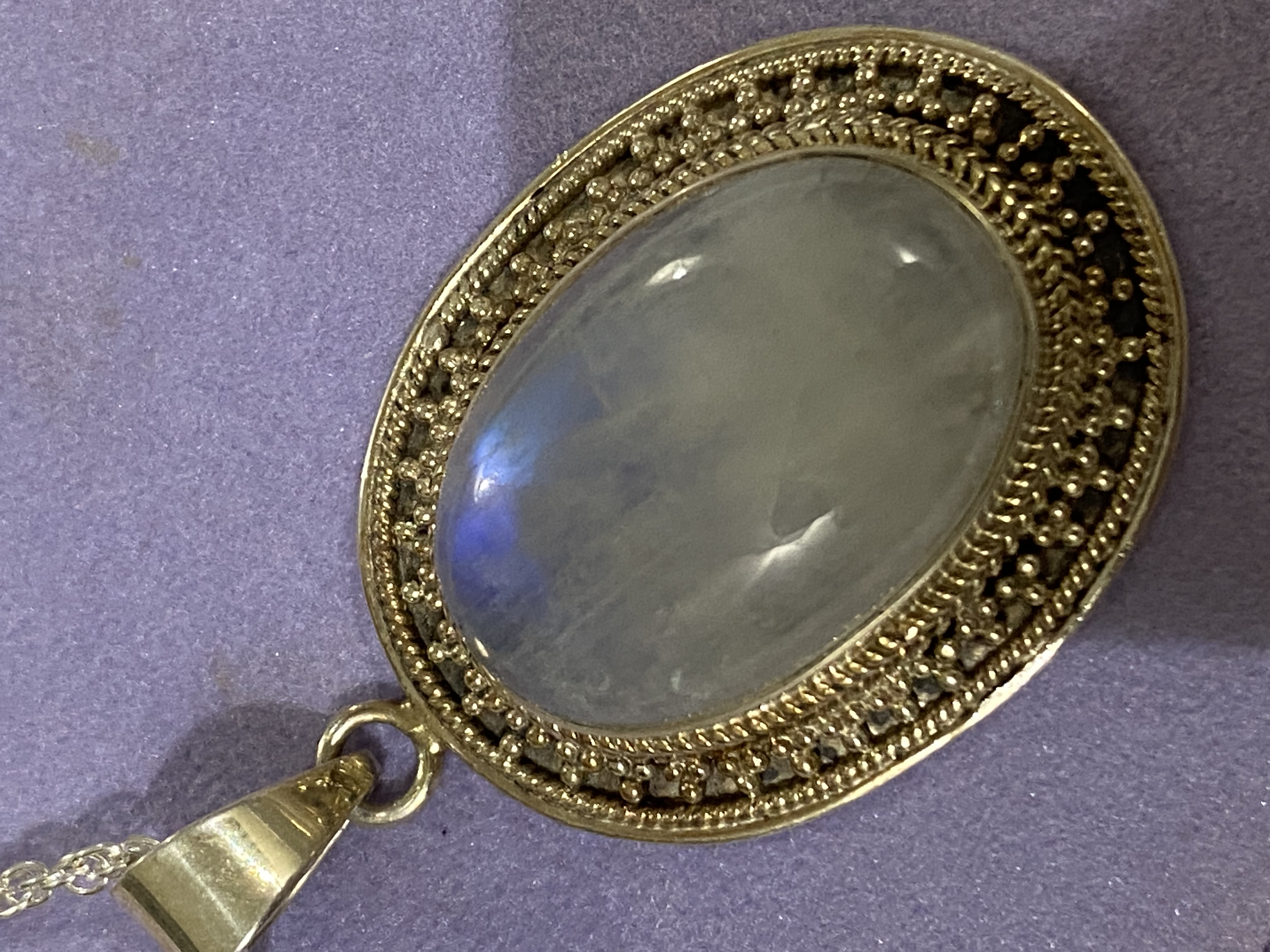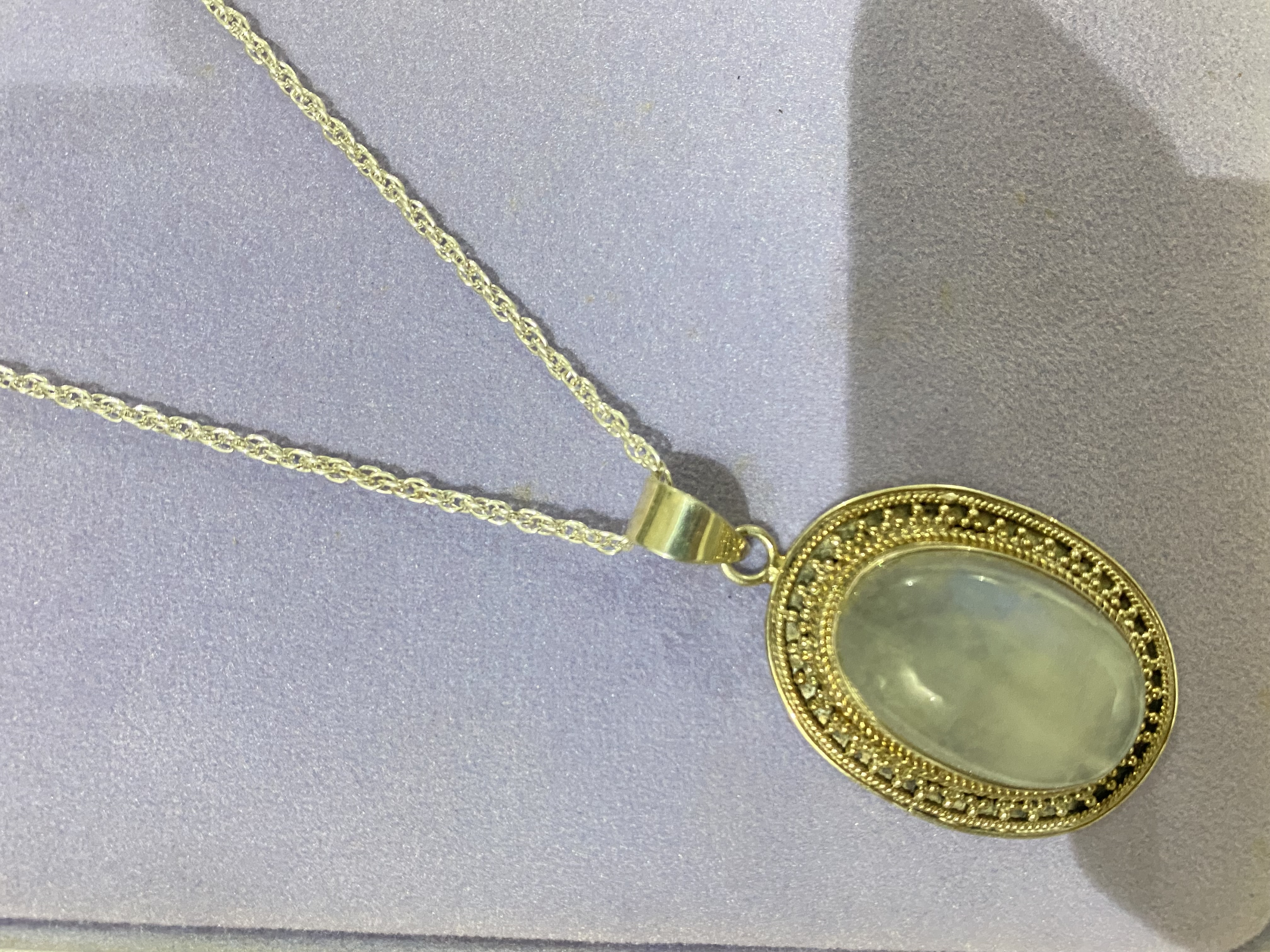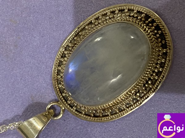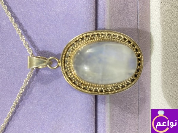 قلادة حجر القمر الطبيعي بتعليقة تفصيل فضه وسلسلة عيار 925