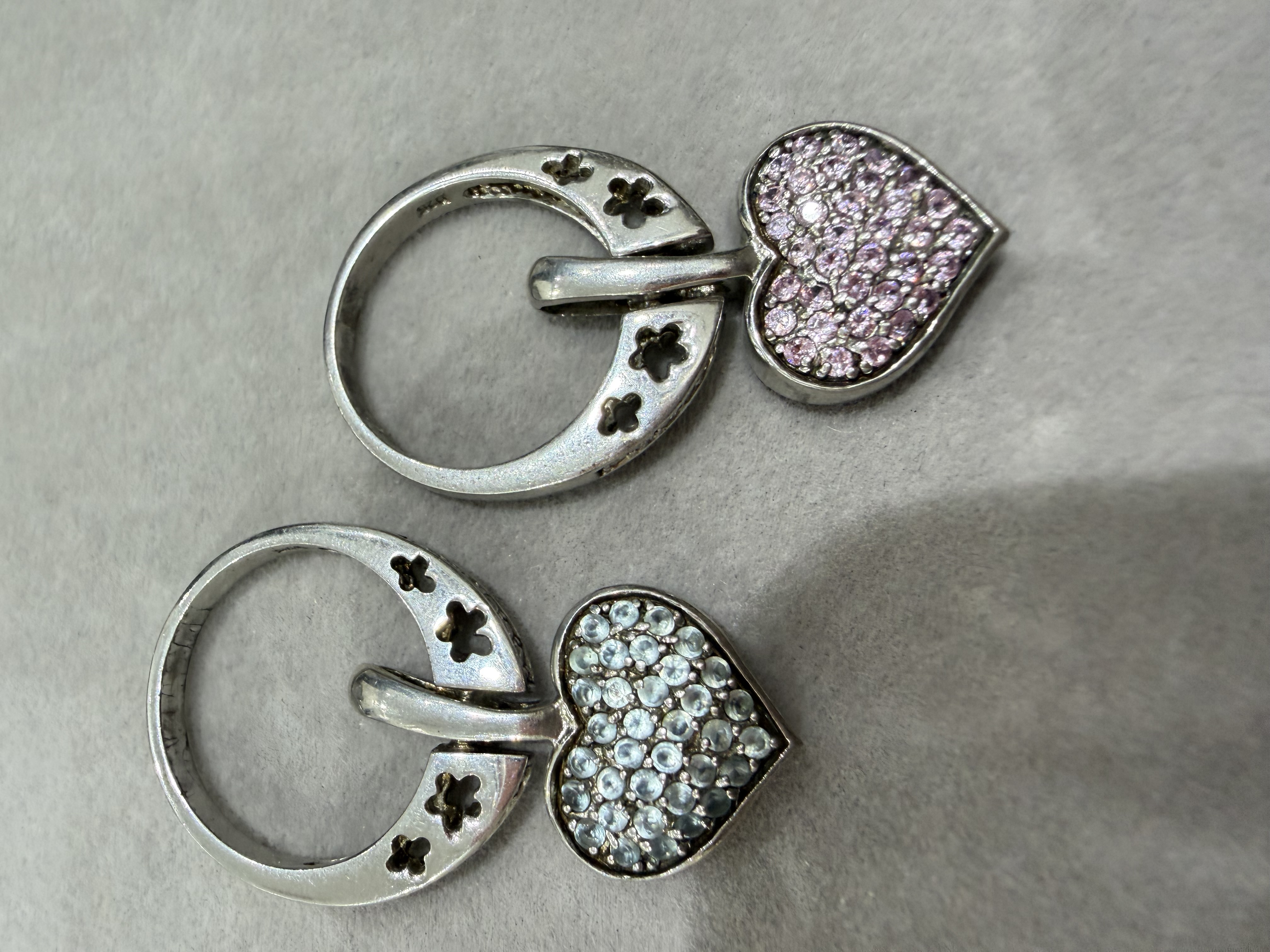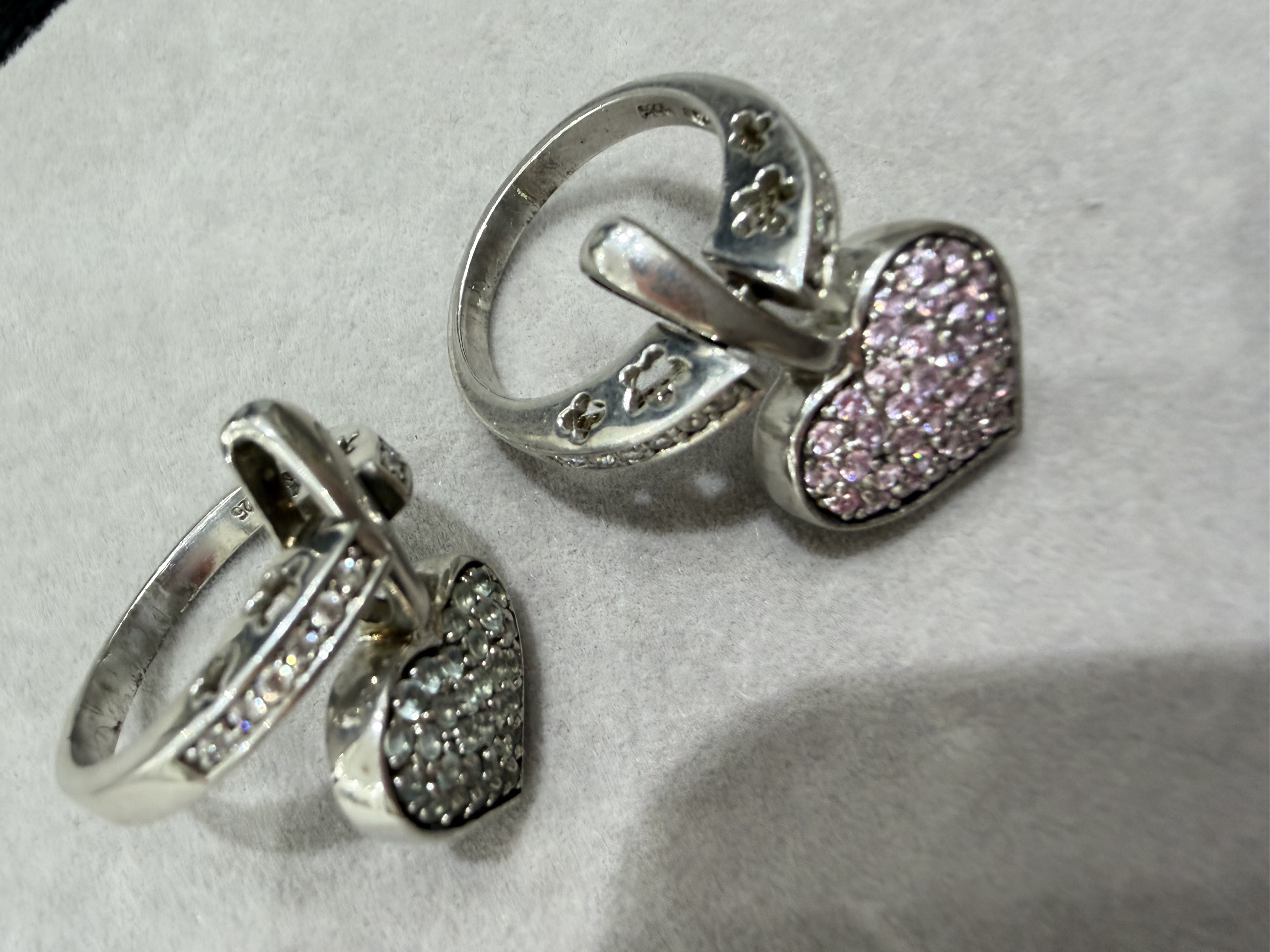 اقدم لكم خواتم فضه جديدة نسائية عيار 925 على شكل قلب متحرك ❤️ وتصميم راقي ومختلف ومرصعة بفصوص زركون أبيض ووردي وأزرق مميز وبسعر منافس … مقاسات الخواتم / 7 و 8 و 9 لمحبي التميز والموديلات النادرة . وبموديلات مختلفة / 1 / خاتم على شكل قلب بفصوص أبيض ووردي مميز . 2 / خاتم على شكل قلب بفصوص أبيض وأزرق مميز . سعر الخاتم / 140 ريال نهائي . شحن وتوصيل مجاني لجميع مناطق المملكة للباب .