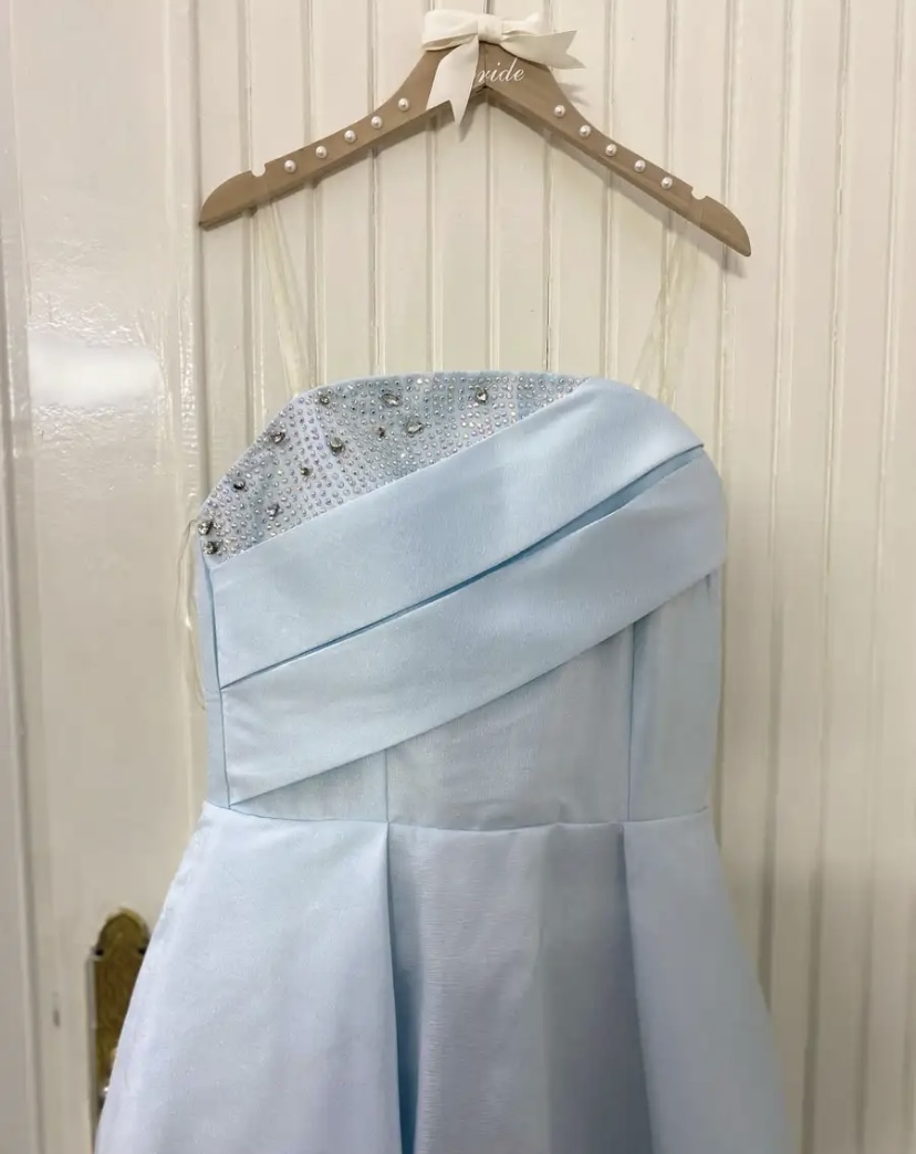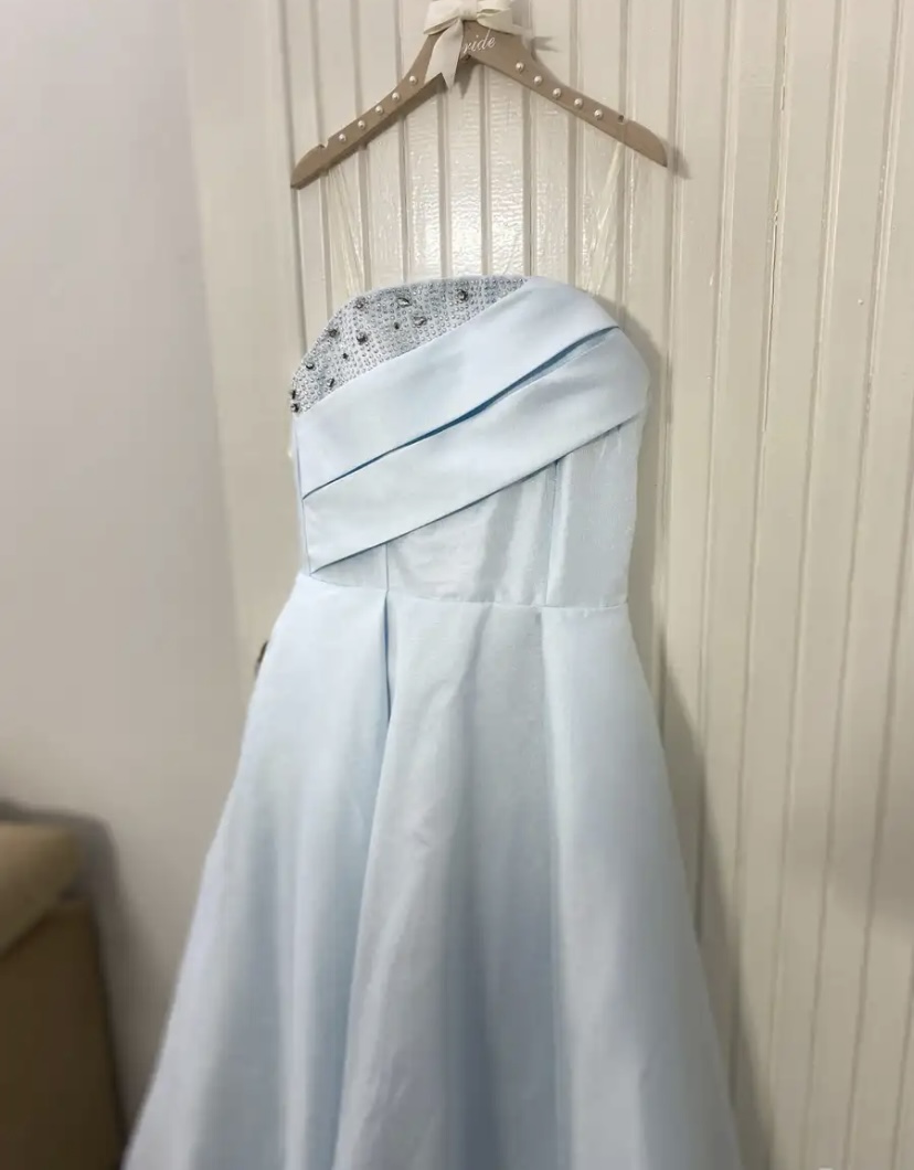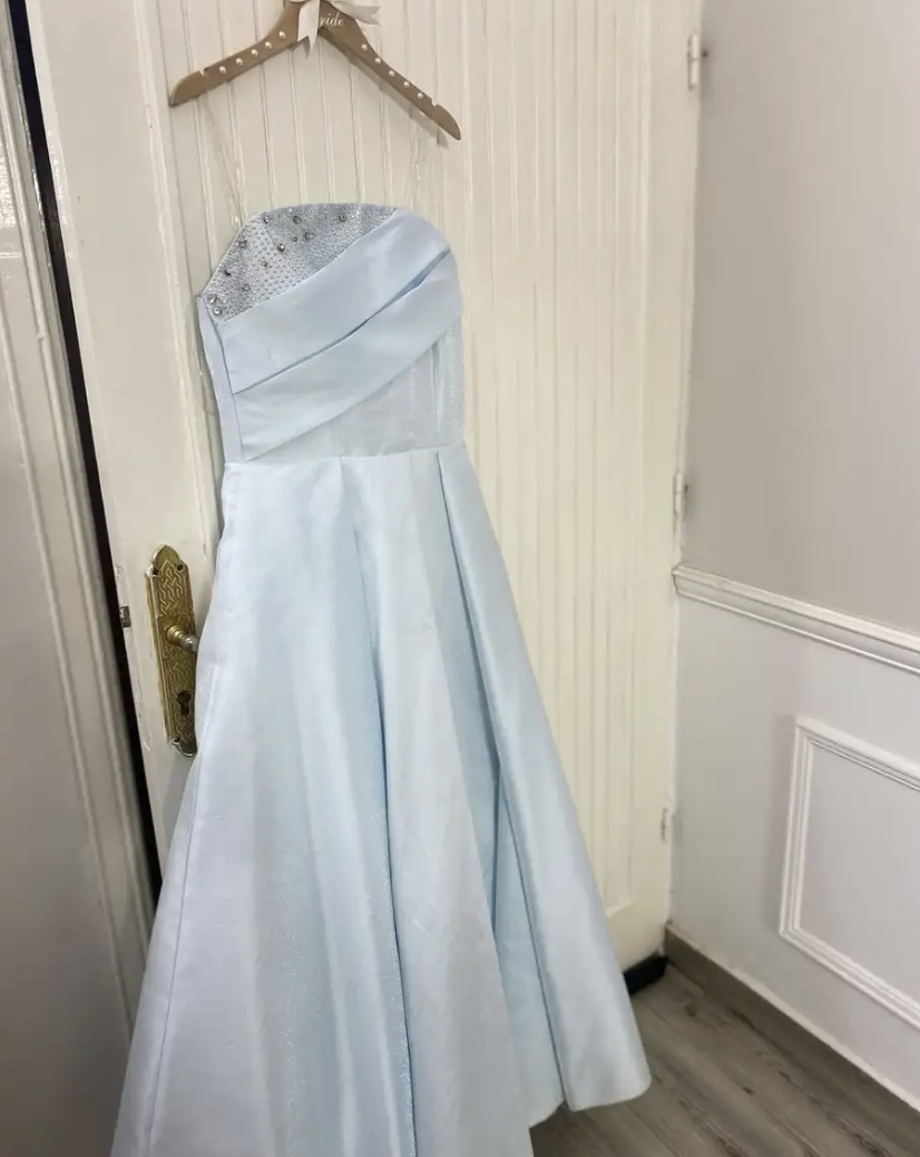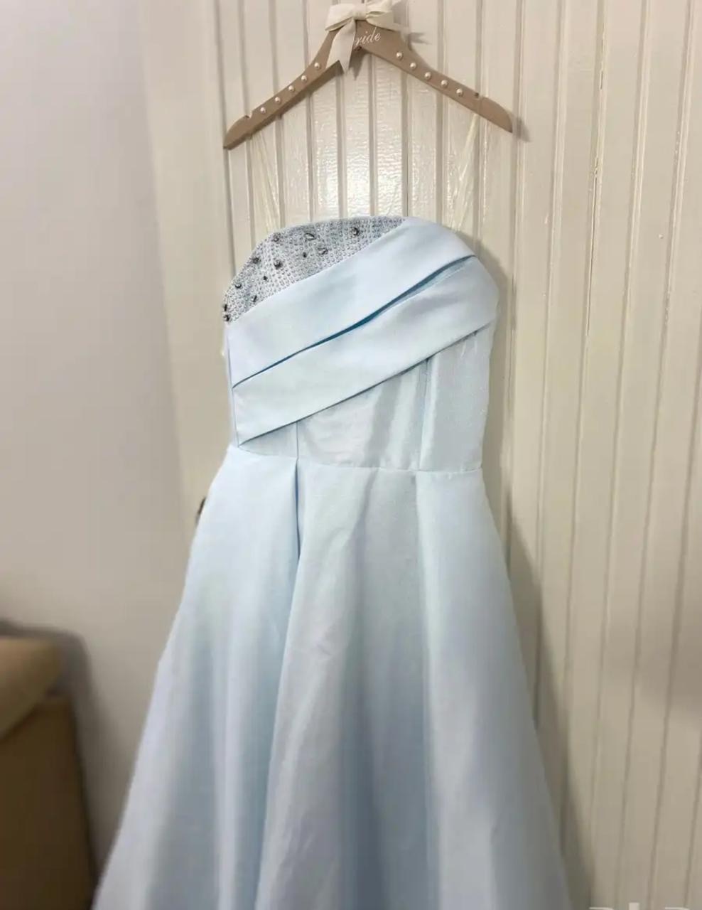 فستان جديد فقط لبسه اولى ببيعه بـ ١٥٠ ريال لونو سماوي والقماش في لمعه خفيفه حلوه