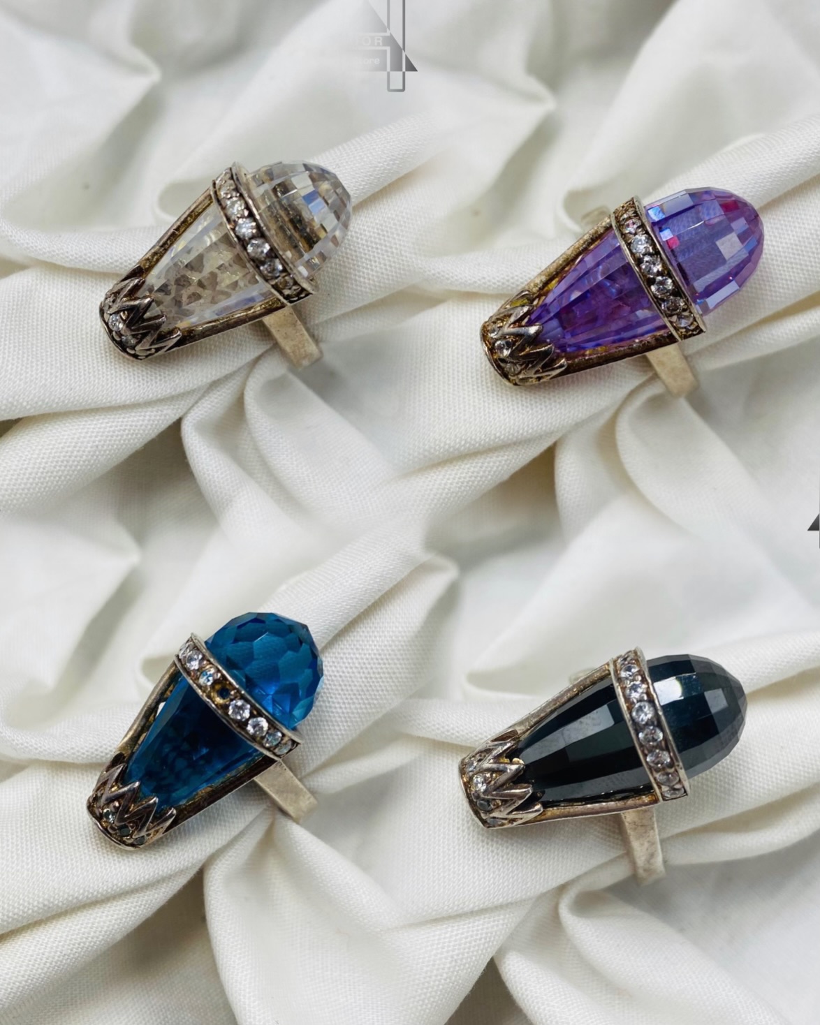 اقدم لكم خواتم نسائية راقية عيار 925 إيطالي بعدة ألوان على شكل كبسولة بفص كريستال ملون وبصوص زركون - لمحبي الأشكال والالوان المميزة والمختلفة وبأربعة ألوان/ فص اسود و فص ابيض و فص أزرق وفص بنفسجي . سعر الخاتم / 120 ريال . شحن وتوصيل مجاني لجميع مناطق المملكة للباب .