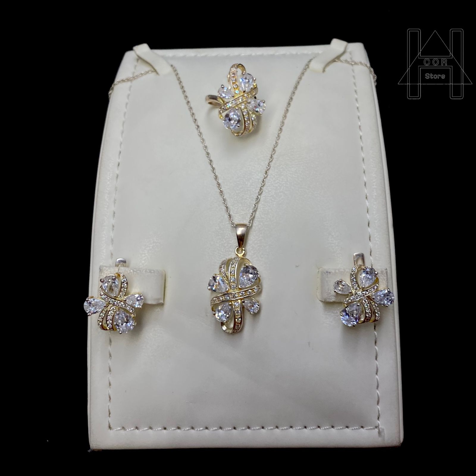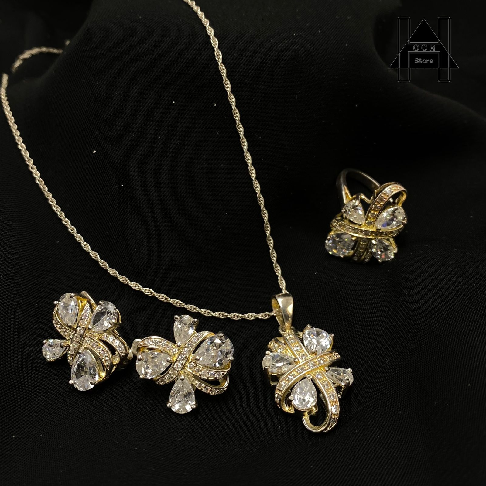 طقم فضه - إسترليني عيار 925 بشكل جميل ومميز وبفصوص زركون درجة اولى مكون من /