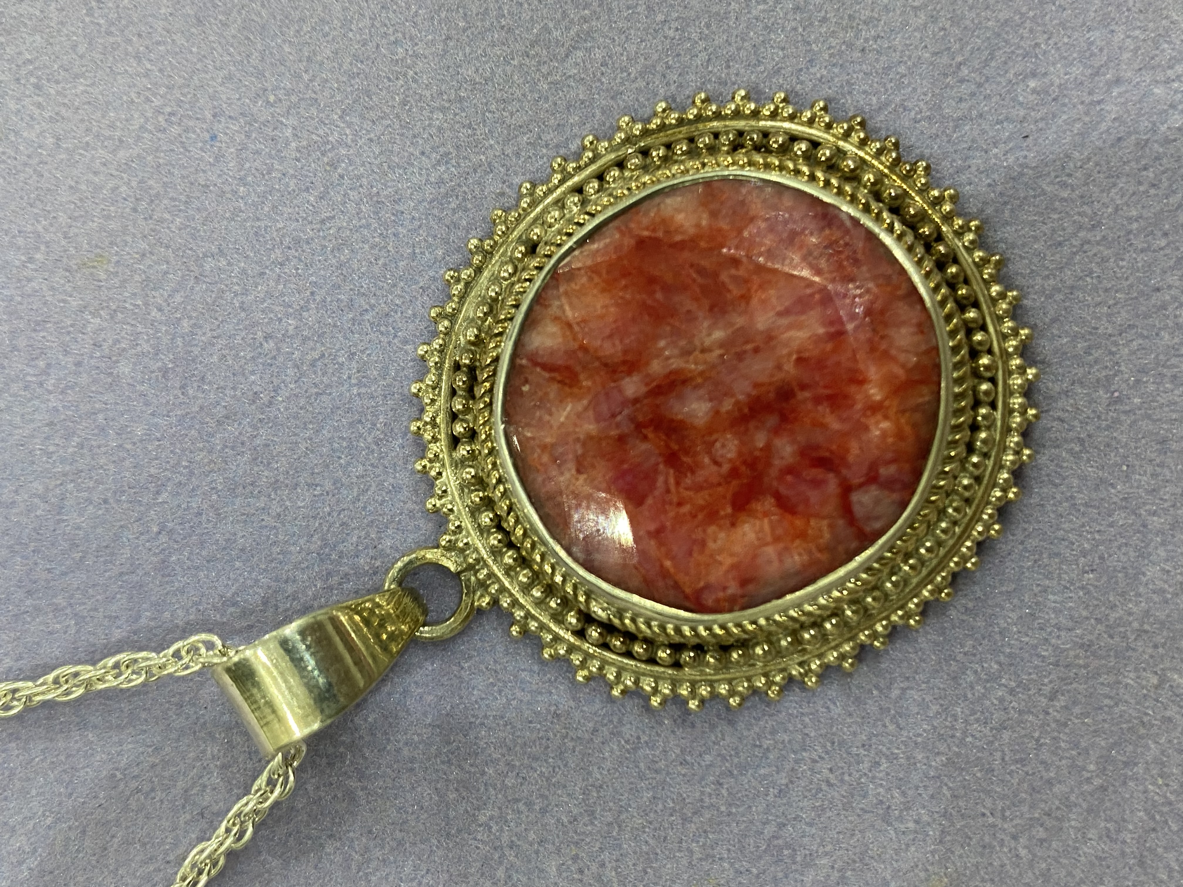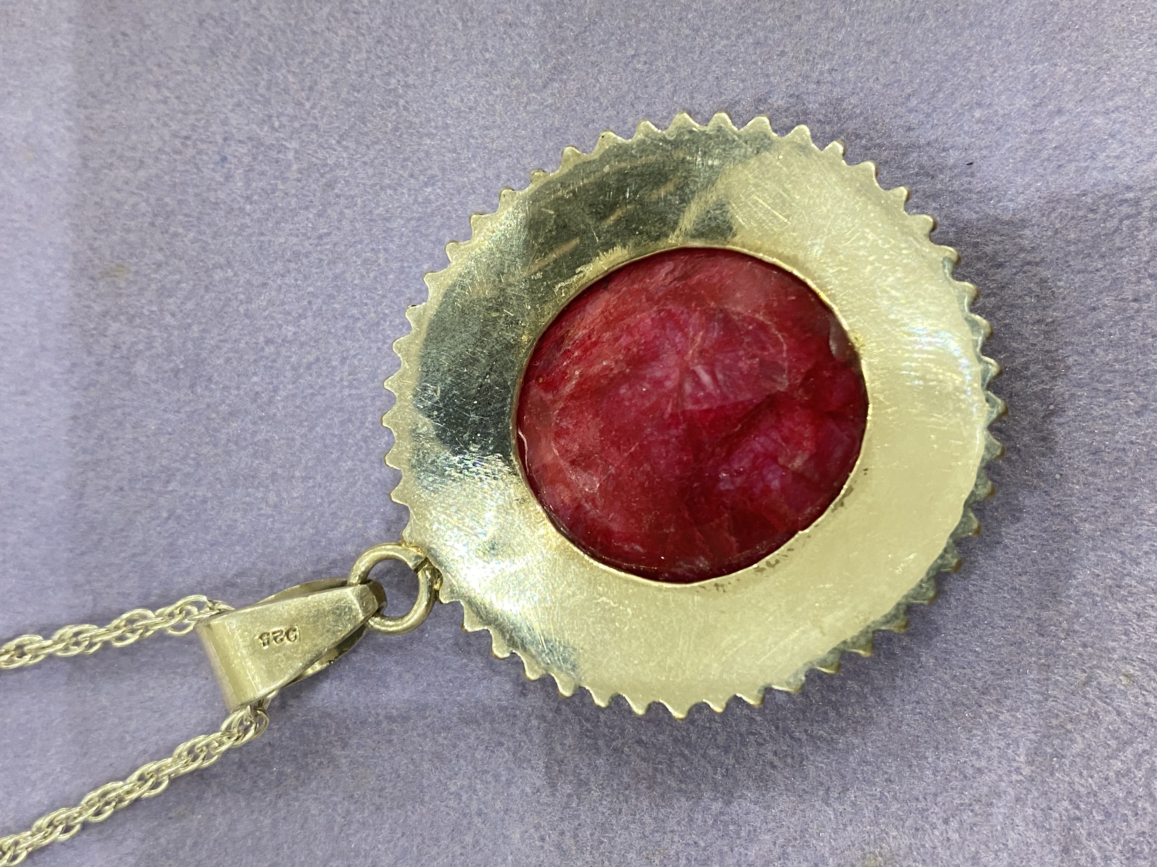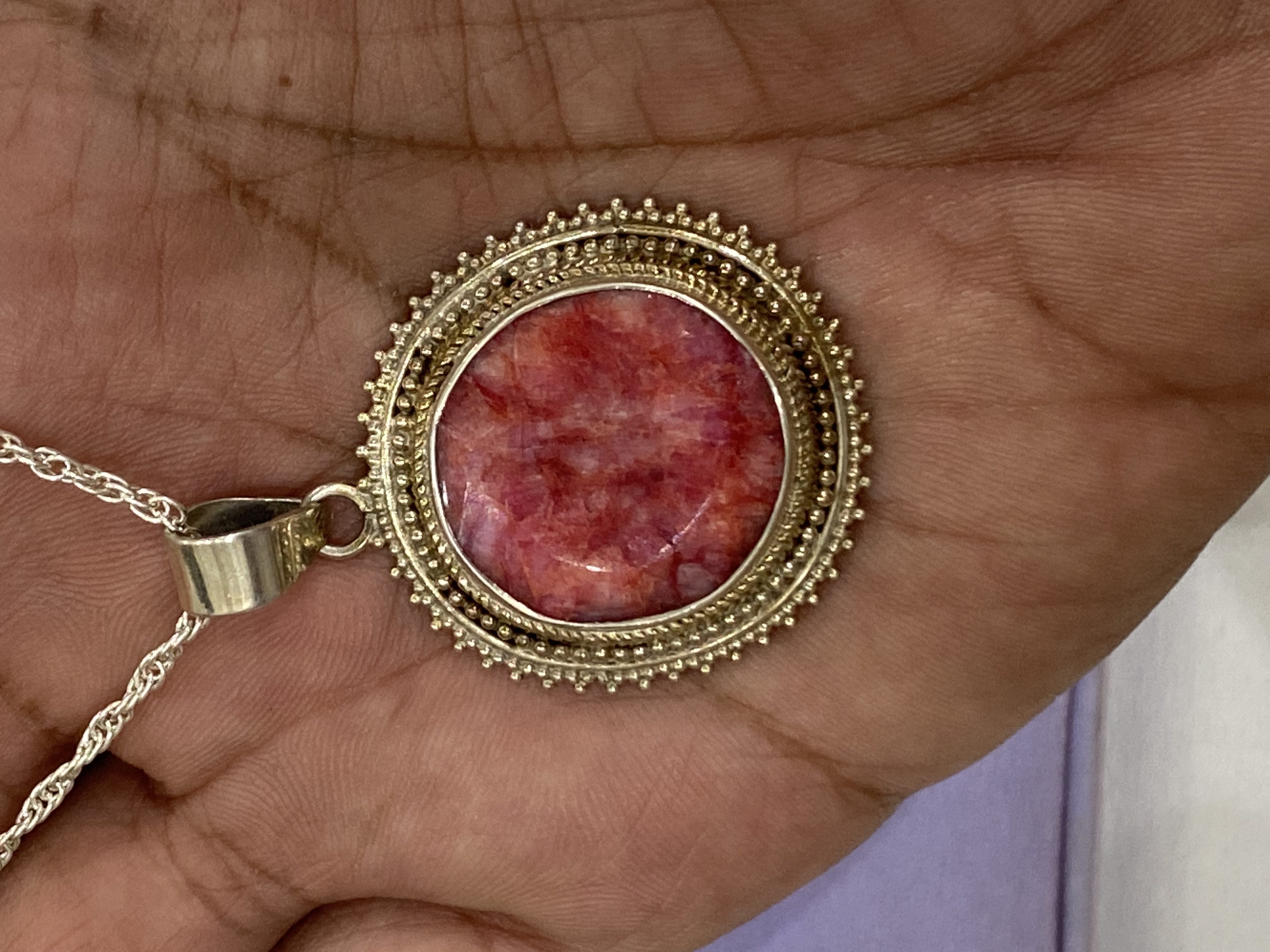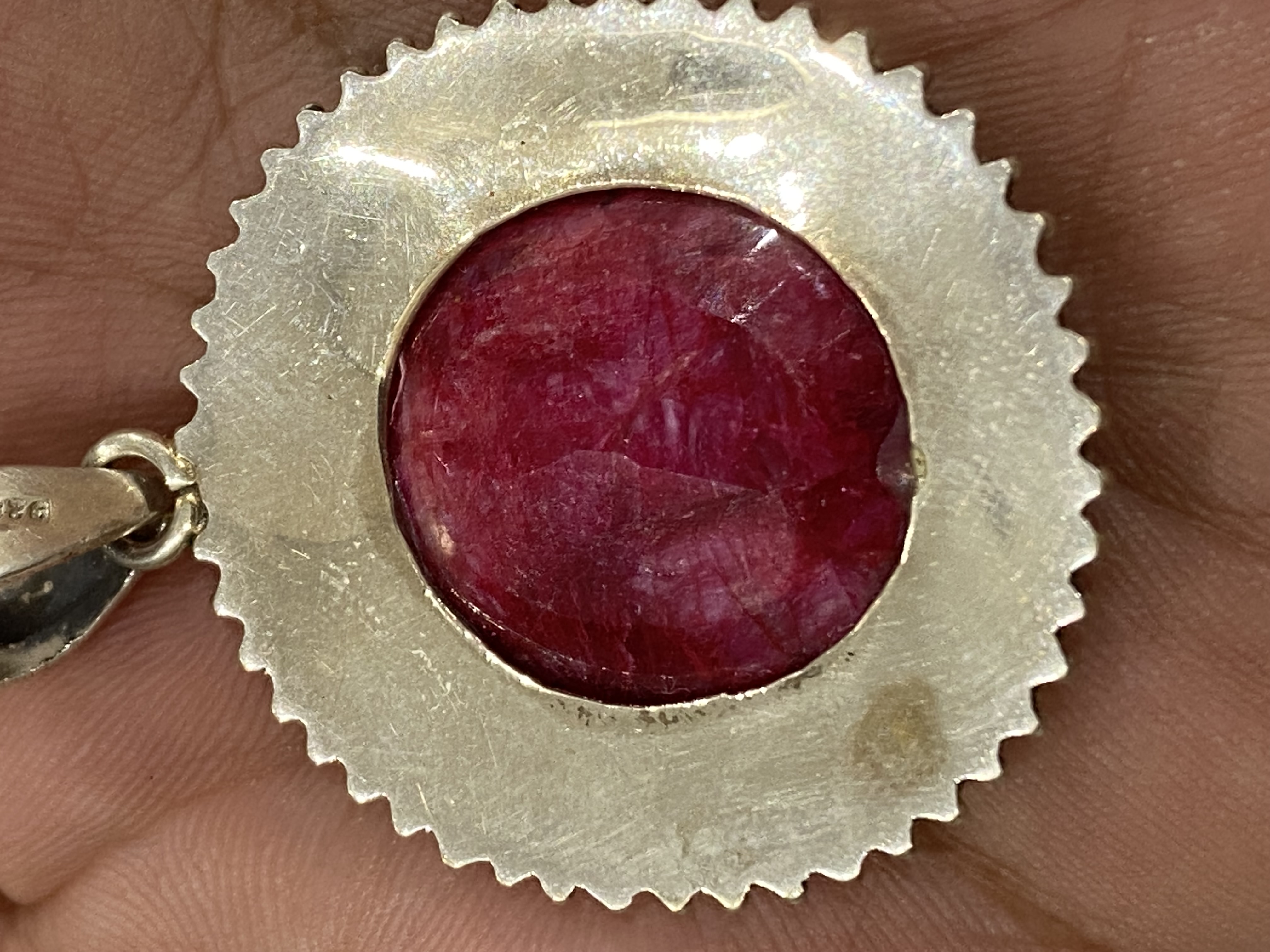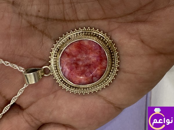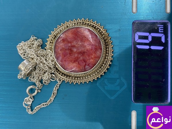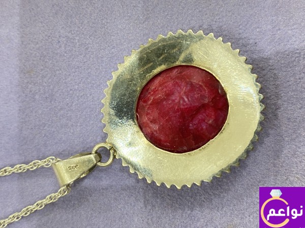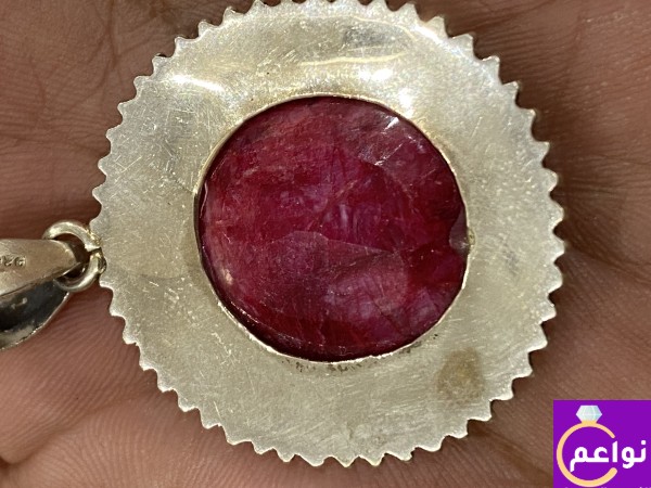 قلادة فضة تفصيل بحجر الياقوت الأحمر ( روبي ) مع سلسلة عيار 925