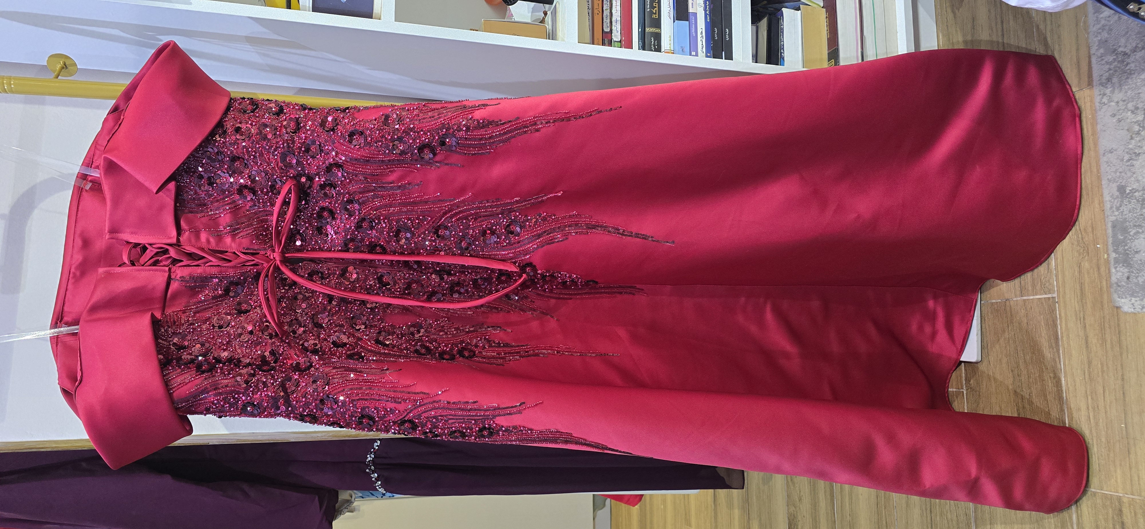فستان سهرة أحمر بتطريز أنيق من الأمام والخلف نظيف وانلبس مرة وحدة مدة 7 ساعات من الخلف سحّاب وحبال مقاس 2XL والطول يناسب 162 سم وزيادة مع الكعب قابل للتضييق من عند الخصر مرفق صورة أثناء الارتداء لتوضيح موديل الفستان أكثر السعر 700 وقابل للتفاوض مكة وجدة فقط للتواصل: 0560807076