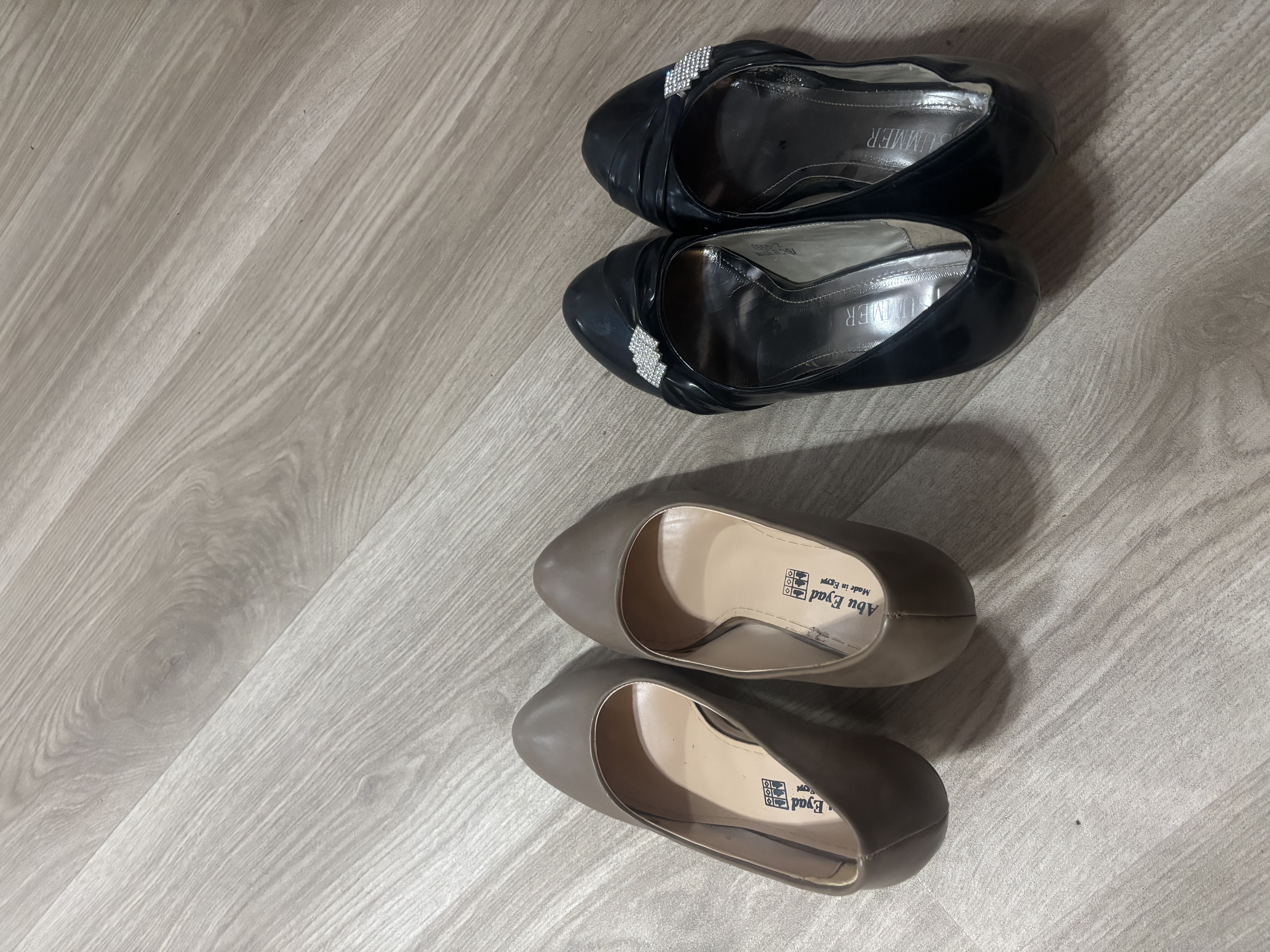 أحذيه جديده للمناسبات والسهره ( كعب ) لم تلبس أبدًا ، لون بني والآخرى لون أسود ..