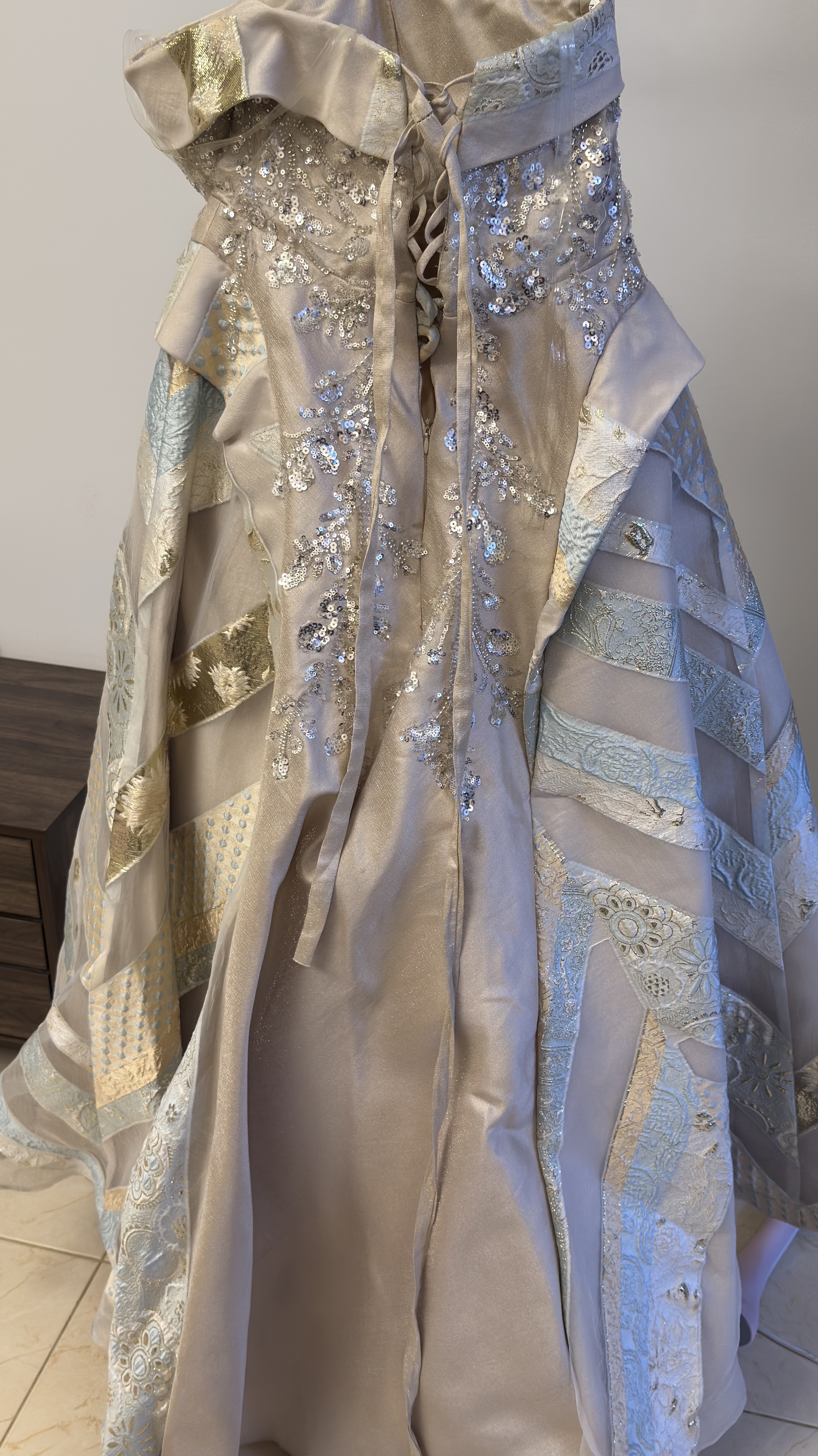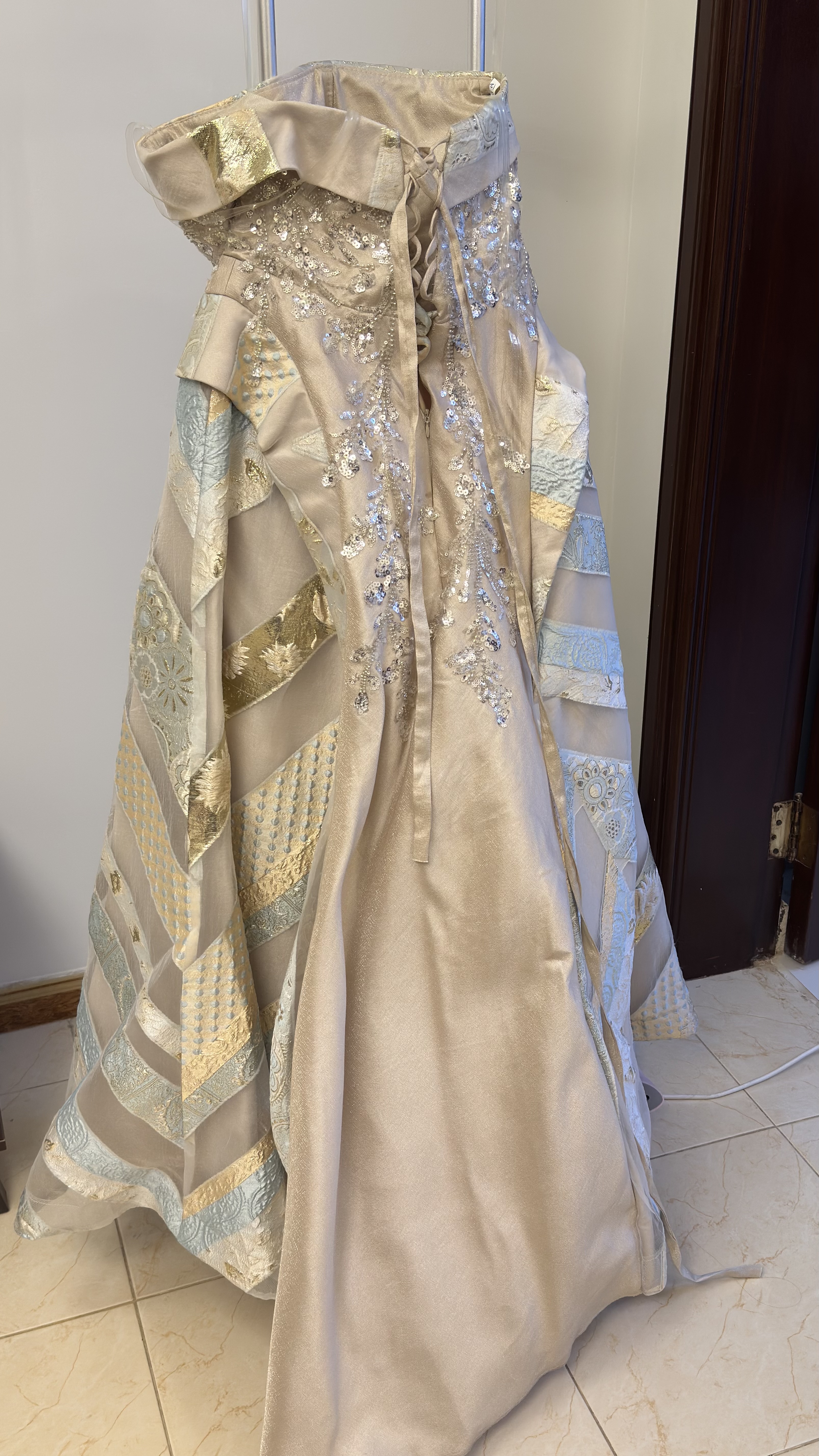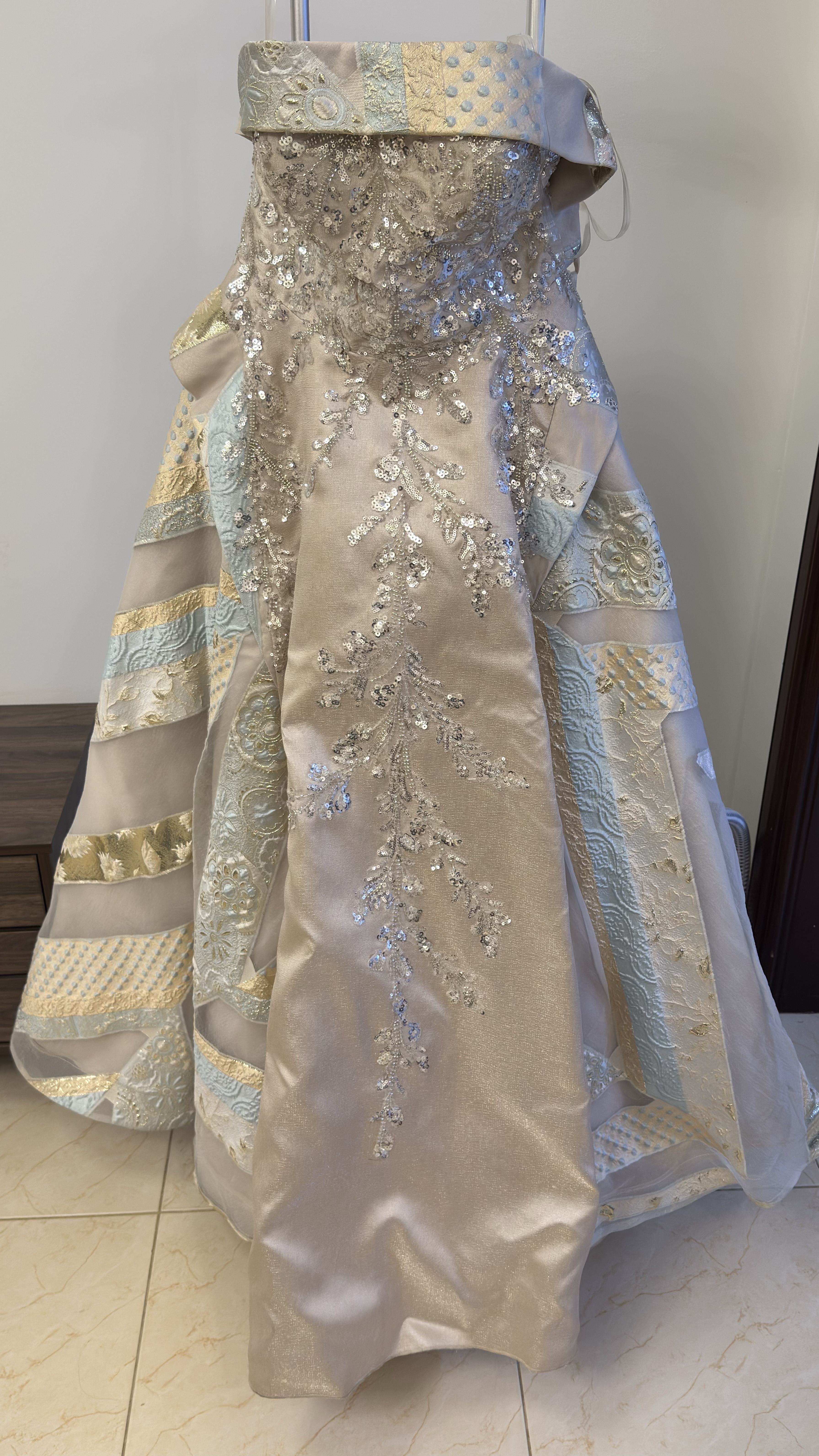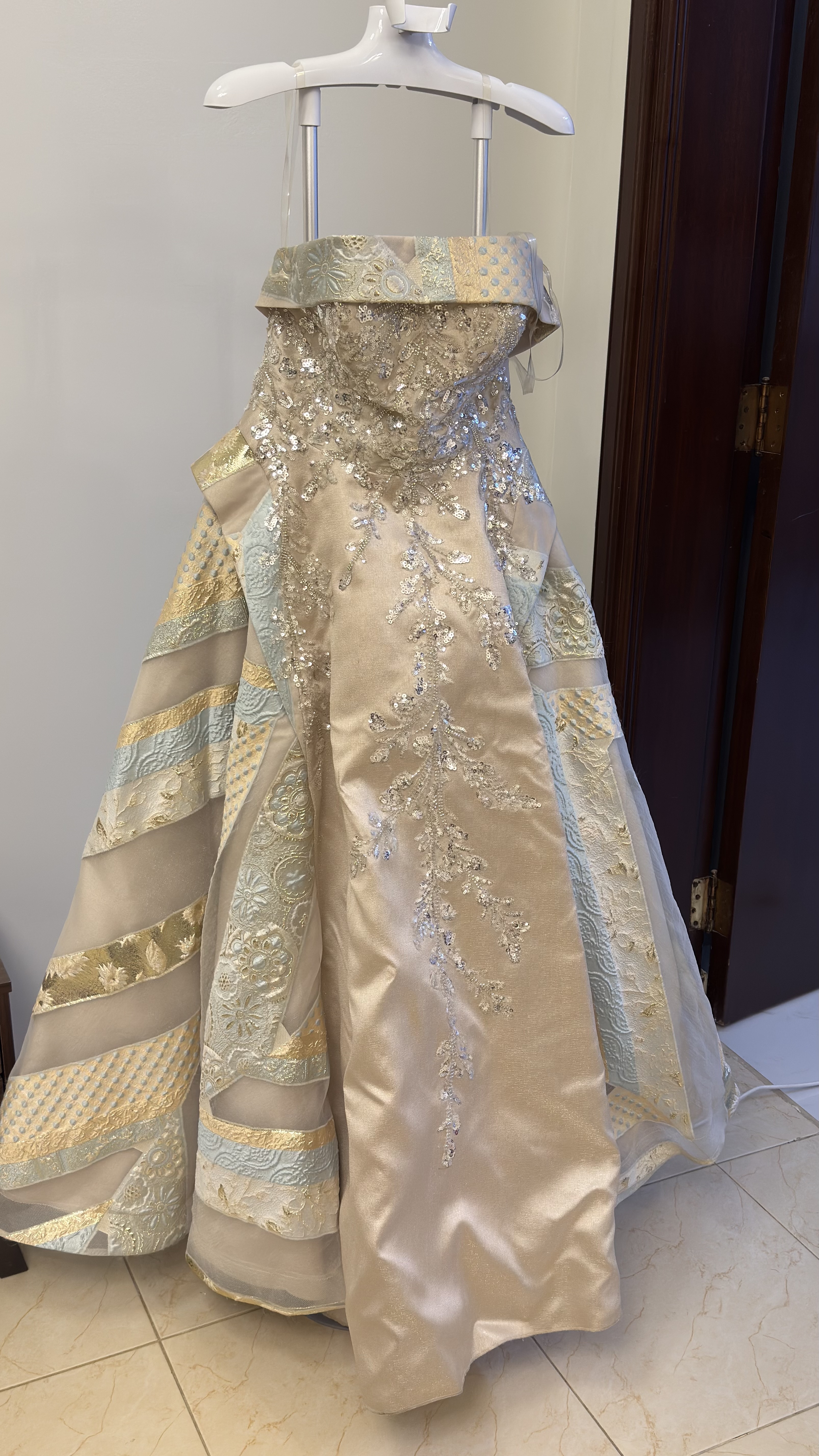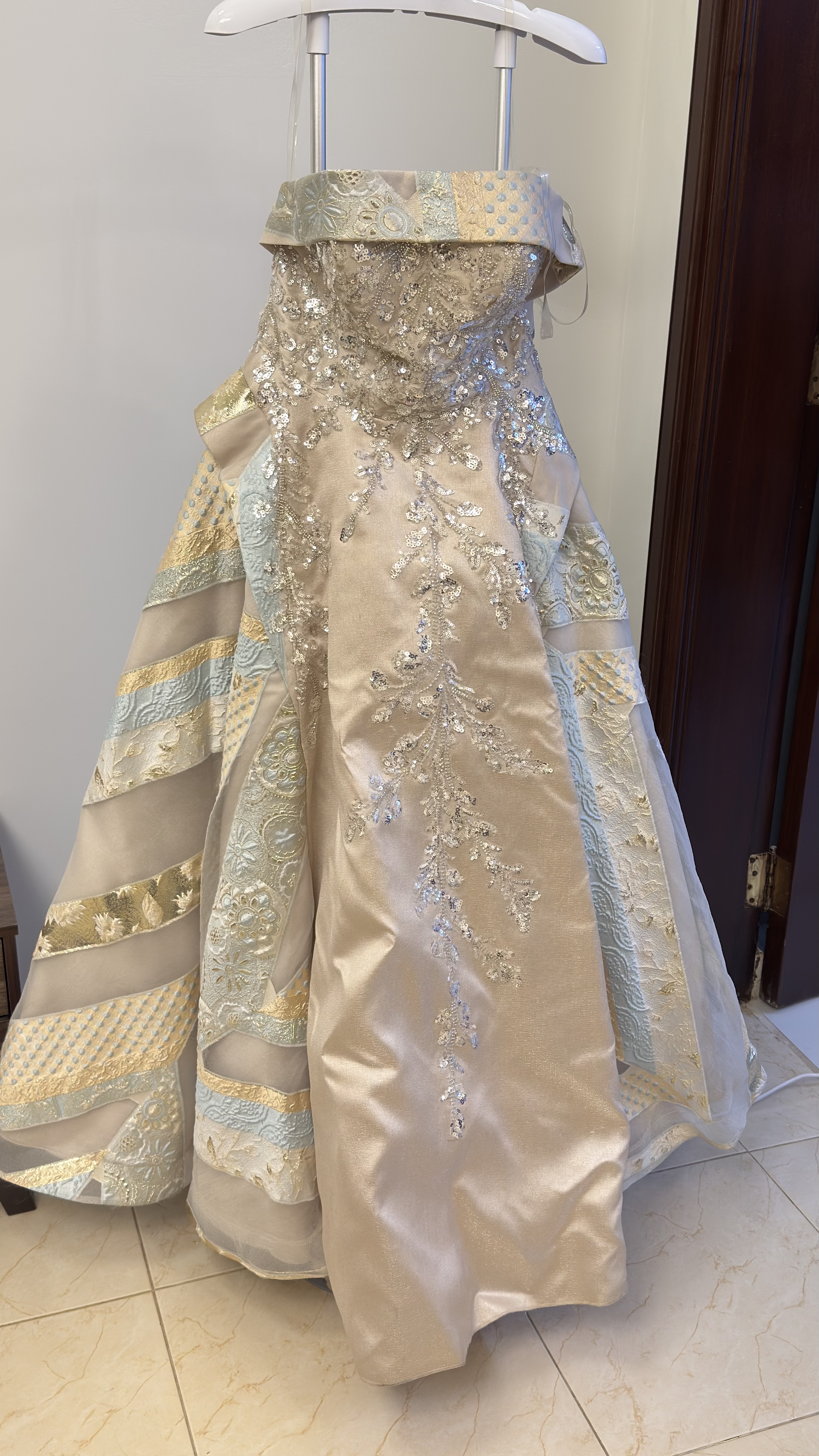 فستان سهره استخدام مرا وحدة مقاس 12 وعليه تعديل لون بيج سعر البيع :1500 قابل للتفاوض