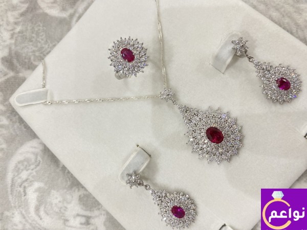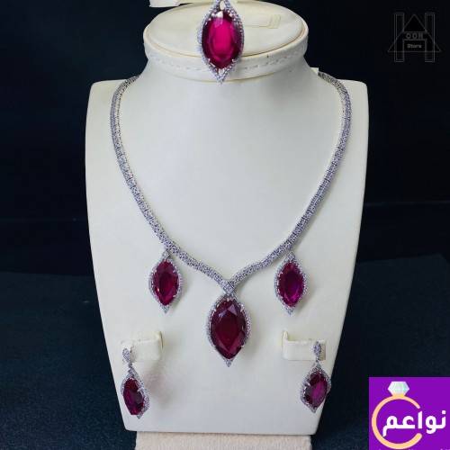 طقم فضة عيار 925 فخم وراقي بفصوص ياقوت أ
