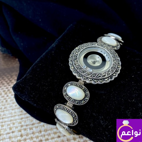 ساعة فضة نادرة نسائي عيار 925 مطعمة بزرك