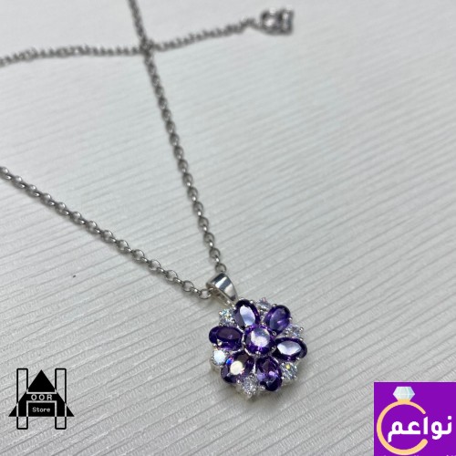 قلادة فضة تفصيل بحجر الياقوت الأحمر ( رو