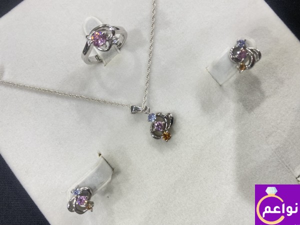 طقم فضه ناعم عيار 925 بفصوص زركون ملون