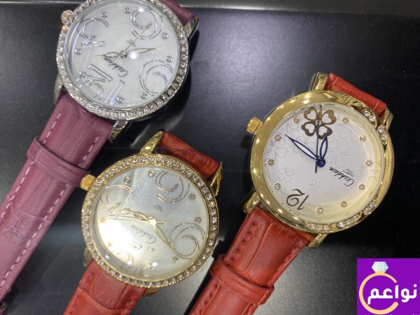 ساعات نسائية جلد فضي وذهبي بفصوص