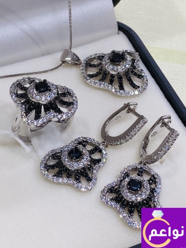 طقم فضة راقي وفاخر عيار 925 بفصوص وموديل