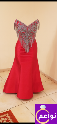 فستان سهرة أحمر مطرز للبيع