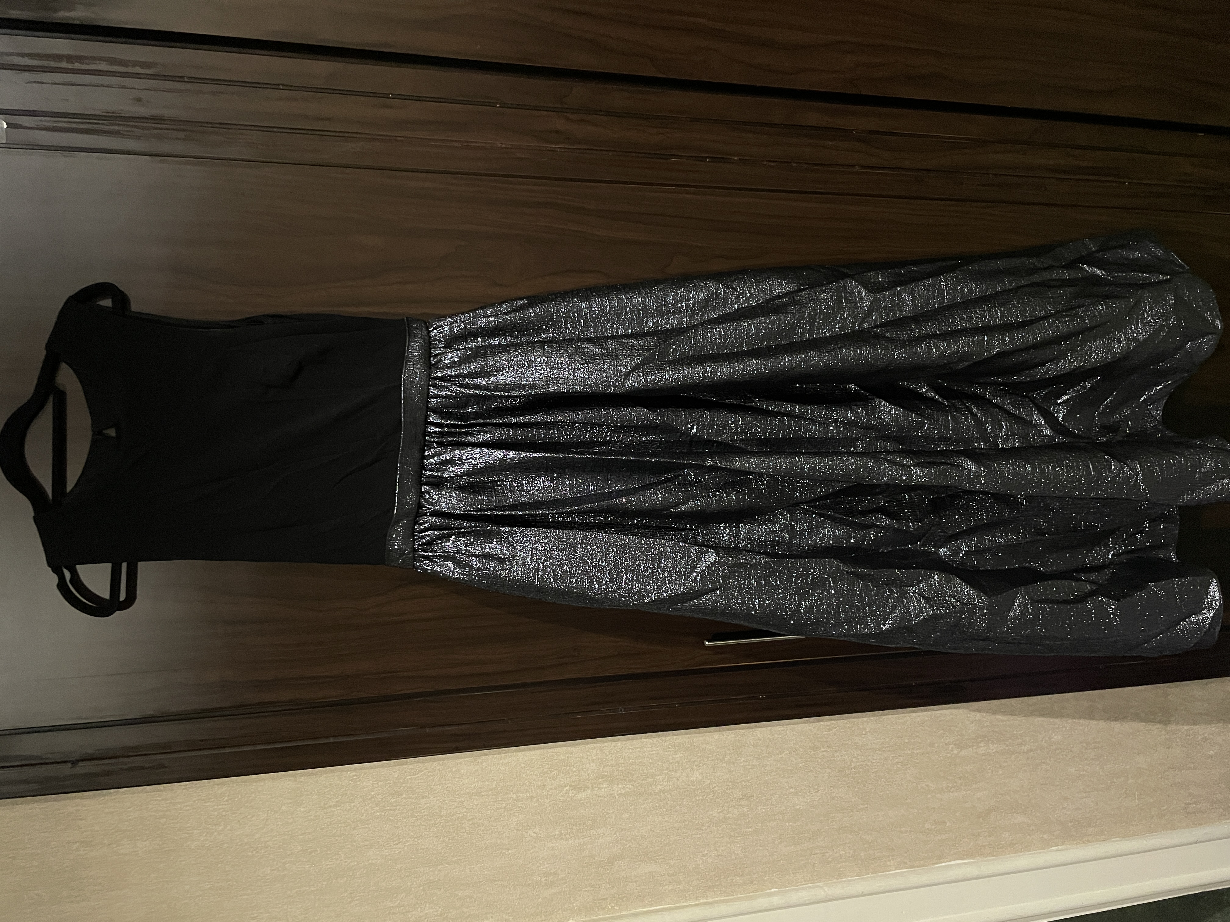 فستان اسود مع تنورة لامعة المقاس موضح بالصور