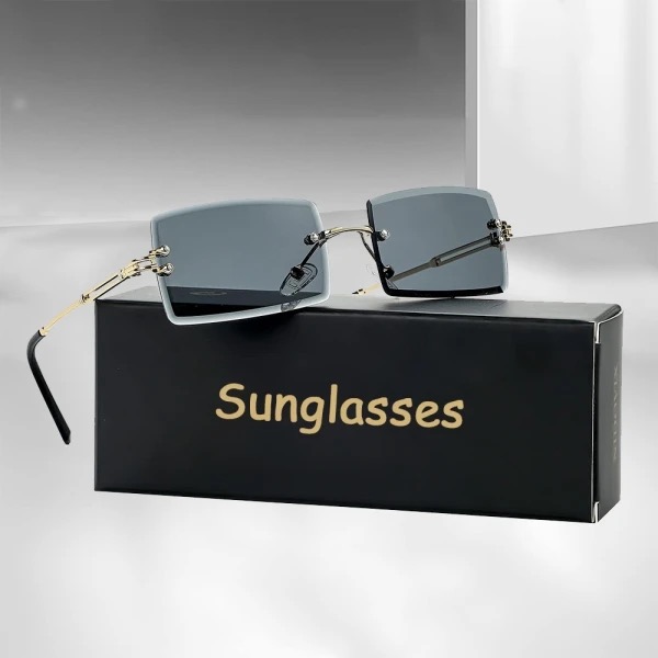 نظارة شمسية عصرية بإطار مستطيل عديم الحواف، تتميز بعدسات رمادية أنيقة ومصممة لتوفير حماية مثالية من أشعة الشمس. مزودة بذراعين معدنيين فاخرين باللون الذهبي مع تفاصيل دقيقة تضيف لمسة من الفخامة. مثالية للاستخدام اليومي أو المناسبات الخاصة، مما يجعلها خيارًا رائعًا كهدية لدينا متجر الاكتروني مرخص بشهادة عمل حر حياكم https://ward-storee0.com/ او بالتيك توك wards235 السعر 67 ريال شحن مجانيّ