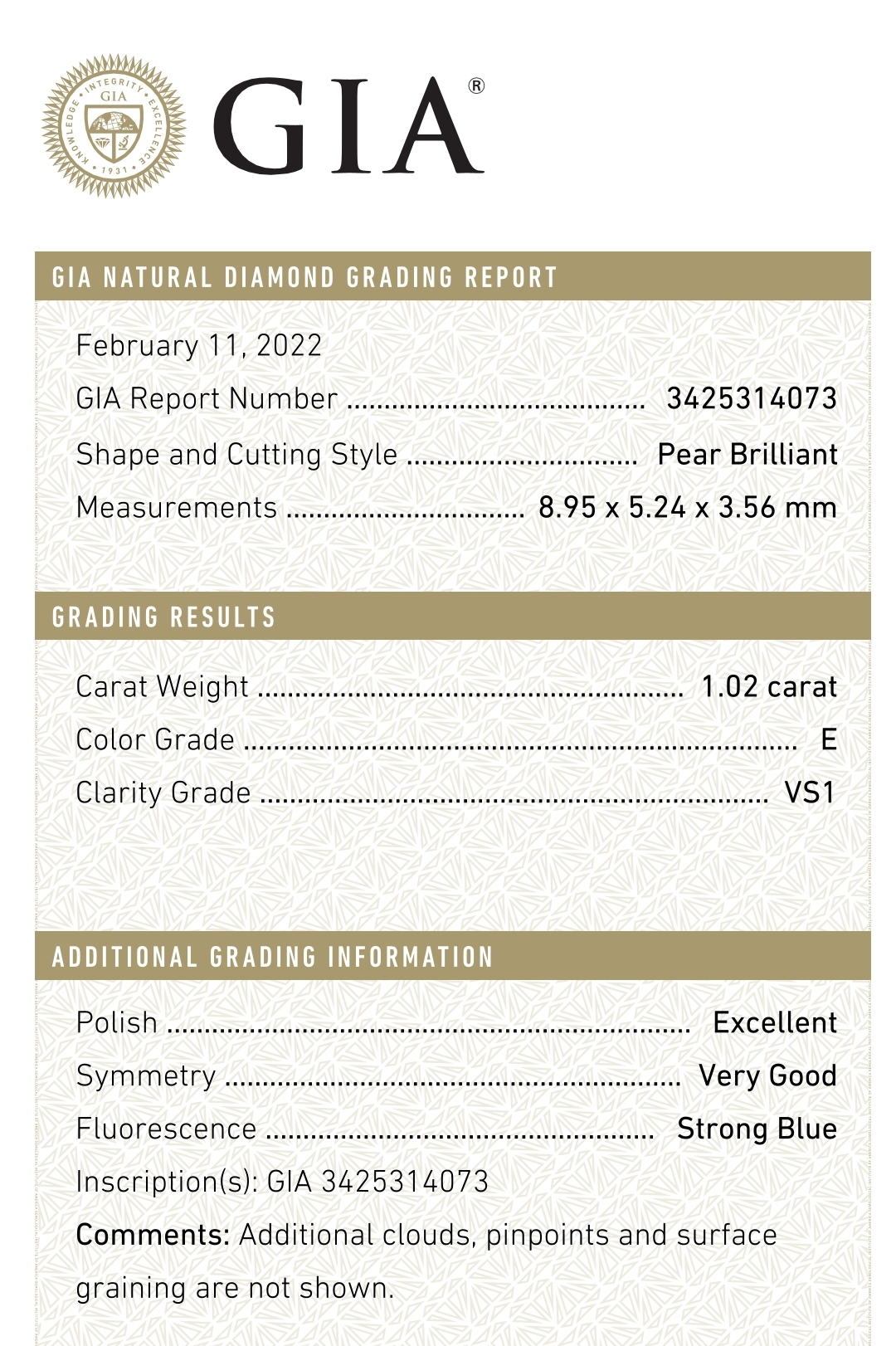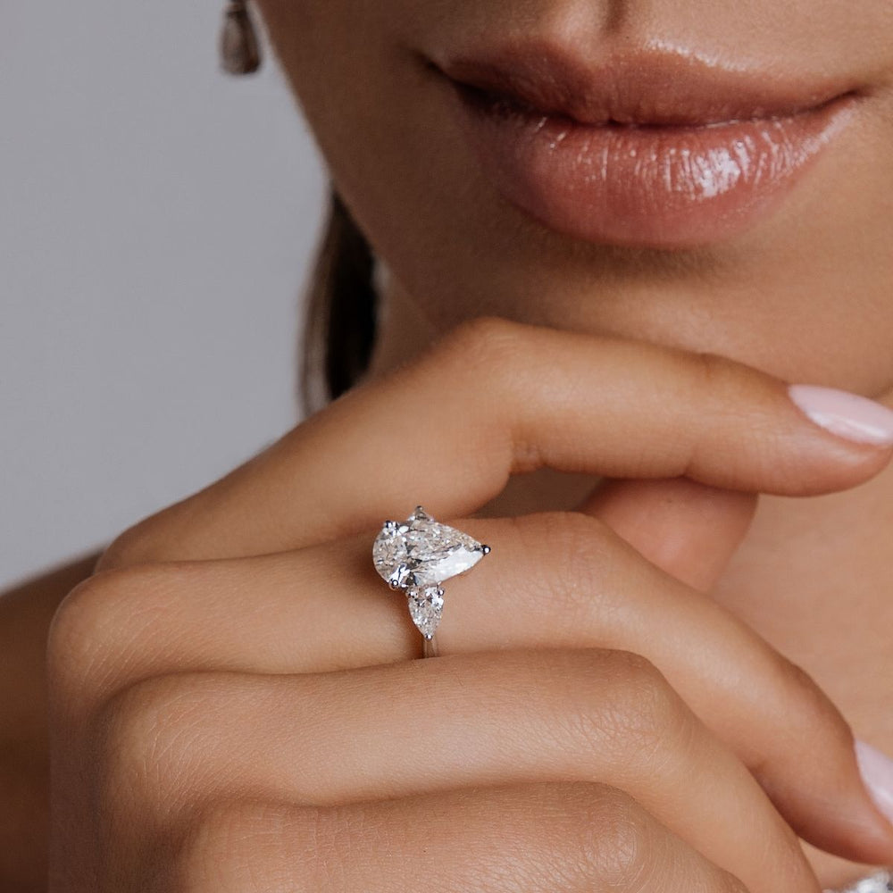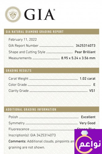 للبيع خاتم سوليتير ألماس طبيعي جديد وغير مستعمل، شكل دمعة بوزن 1.02 قيراط لون E ونقاوة VS1، بشهادة معتمدة من مختبر GlA، بالإضافة إلى فصين الماس طبيعي شكل دمعة على جوانب الخاتم بوزن 0.17 قيراط كل فص، على ذهب أبيض عيار 18.