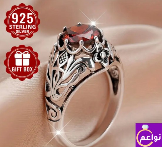 خاتم فضة نسائى استرلينى 925 محلى بالزركون الاحمر مقاس 8 يزن 5 جم 50 ريال فقط