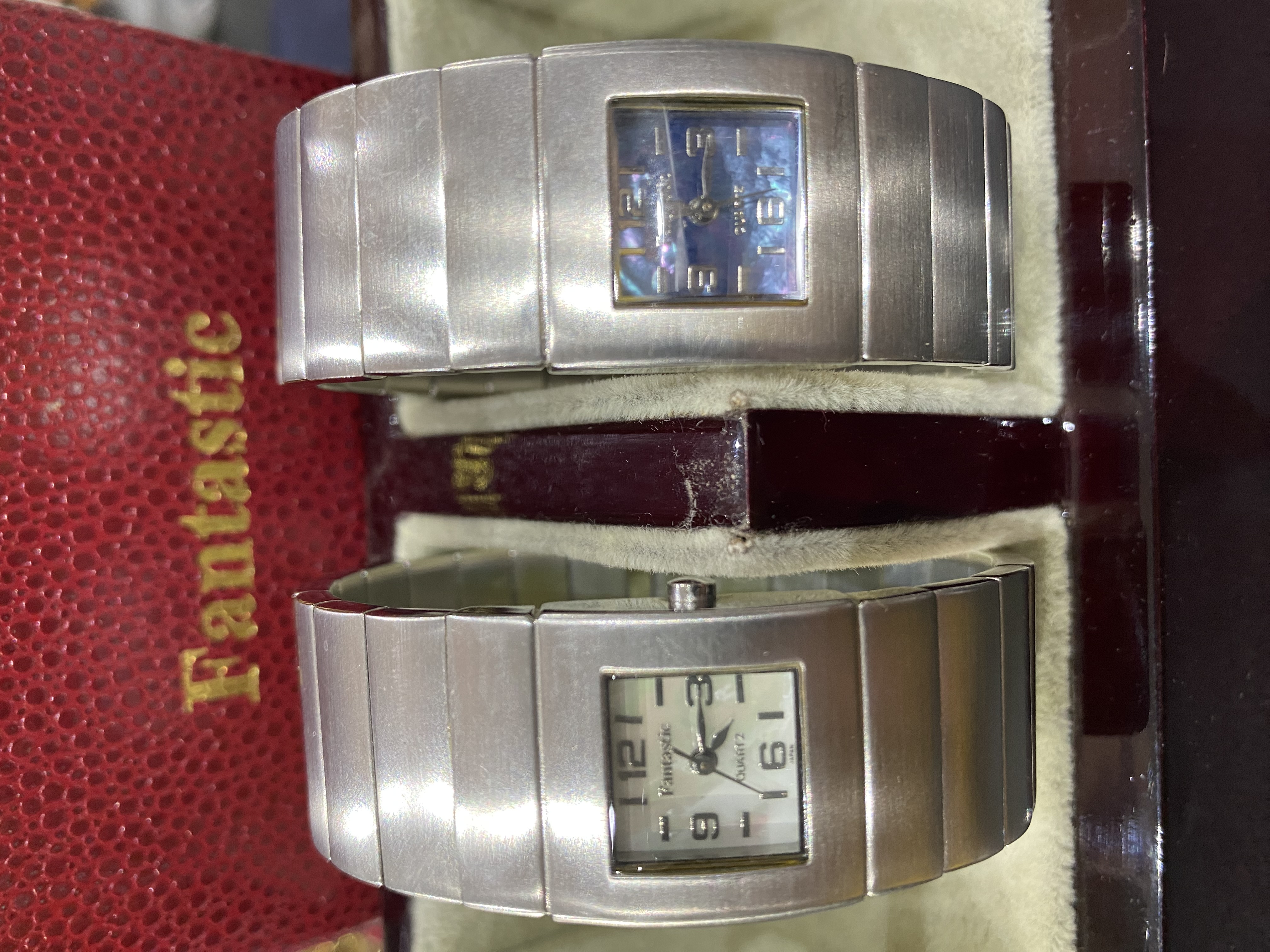 ساعات إسوارة ماركة فانتاستيك تيتانيوم بلونين للميناء - الازرق الصدفي الجديد والأبيض الصدفي - ضد الماء - مقاومة للخدش.
