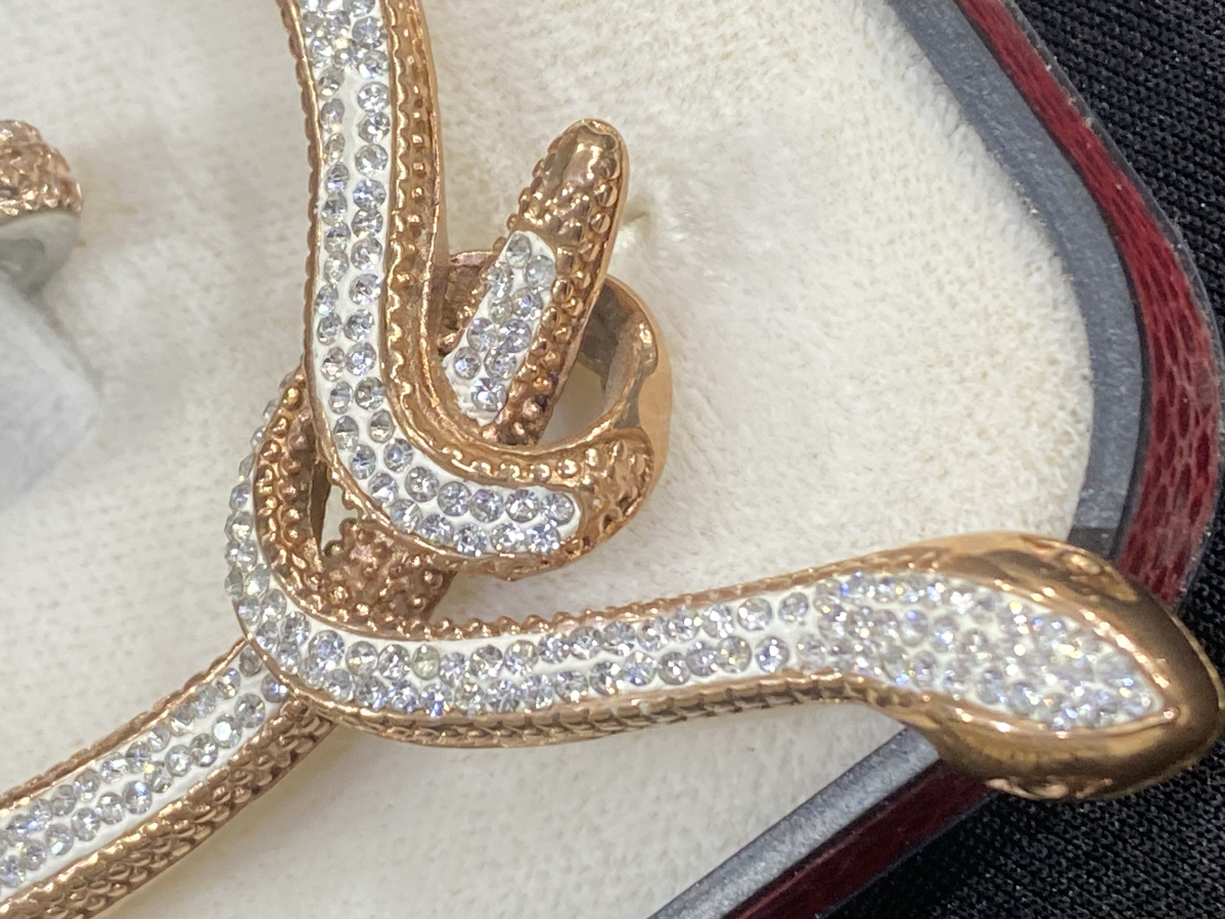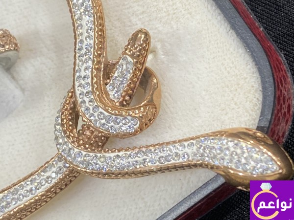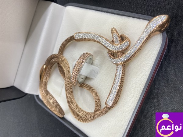 عقد ثعبان إكسسوار نحاسي مع دبلة طقم بفصوص زركون راقي ومميز