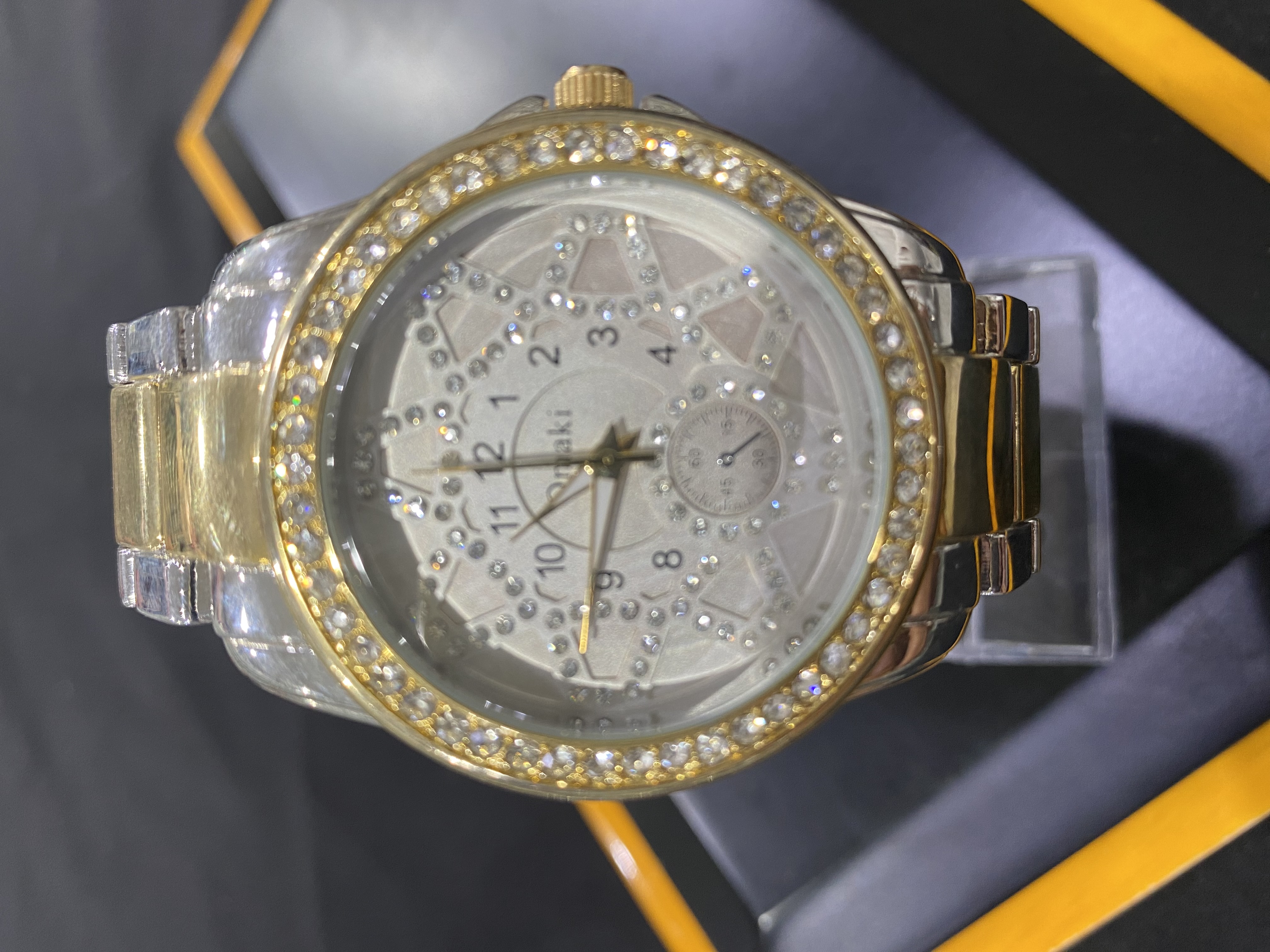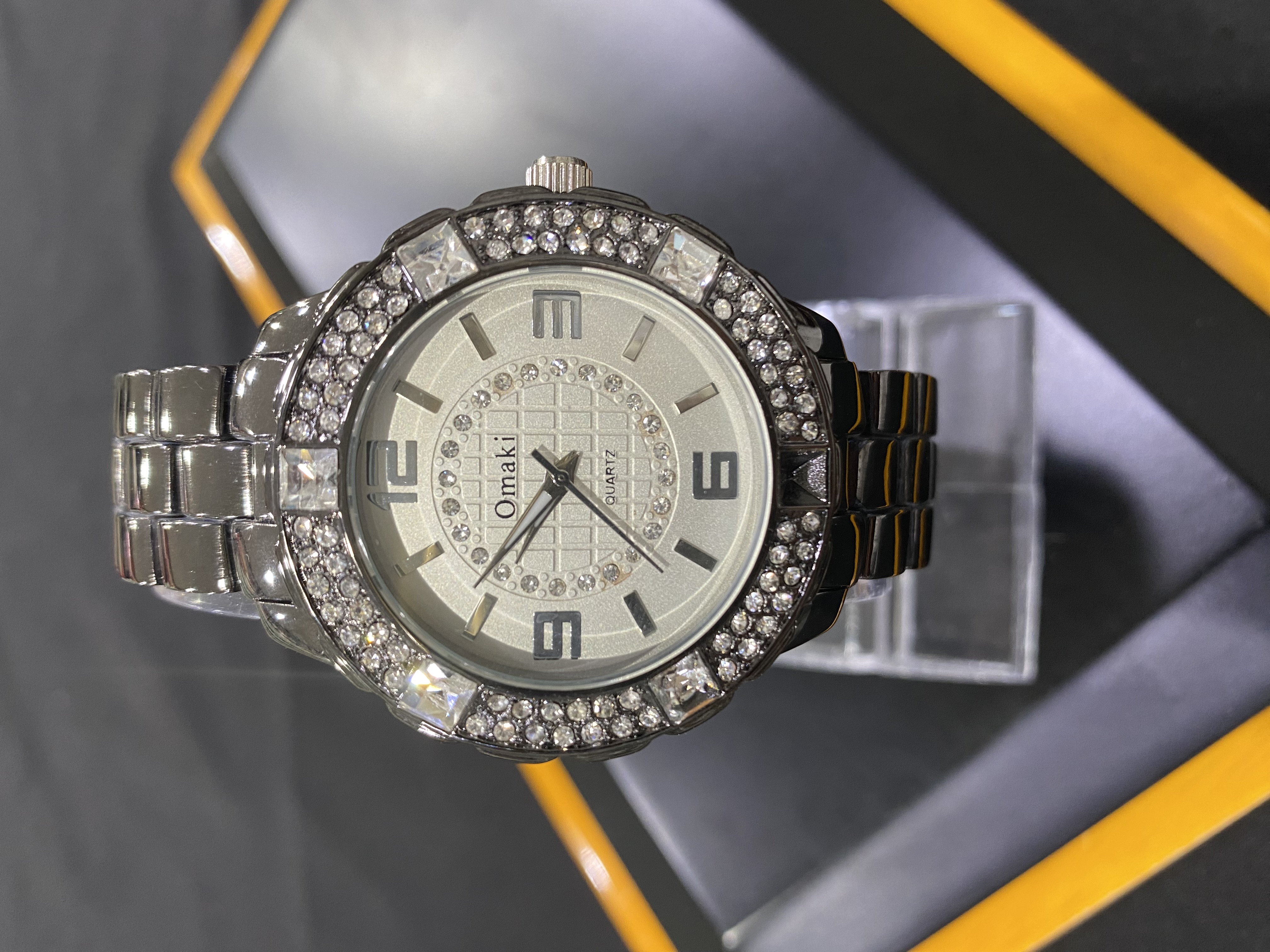 ساعات أوماكي Omani للجنسين رجالي ونسائي بفصوص زركون أمريكي بالألوان الاسود و الذهبي والفضي - مع بوكس وكيس هدية ???? - ساعات جديدة .