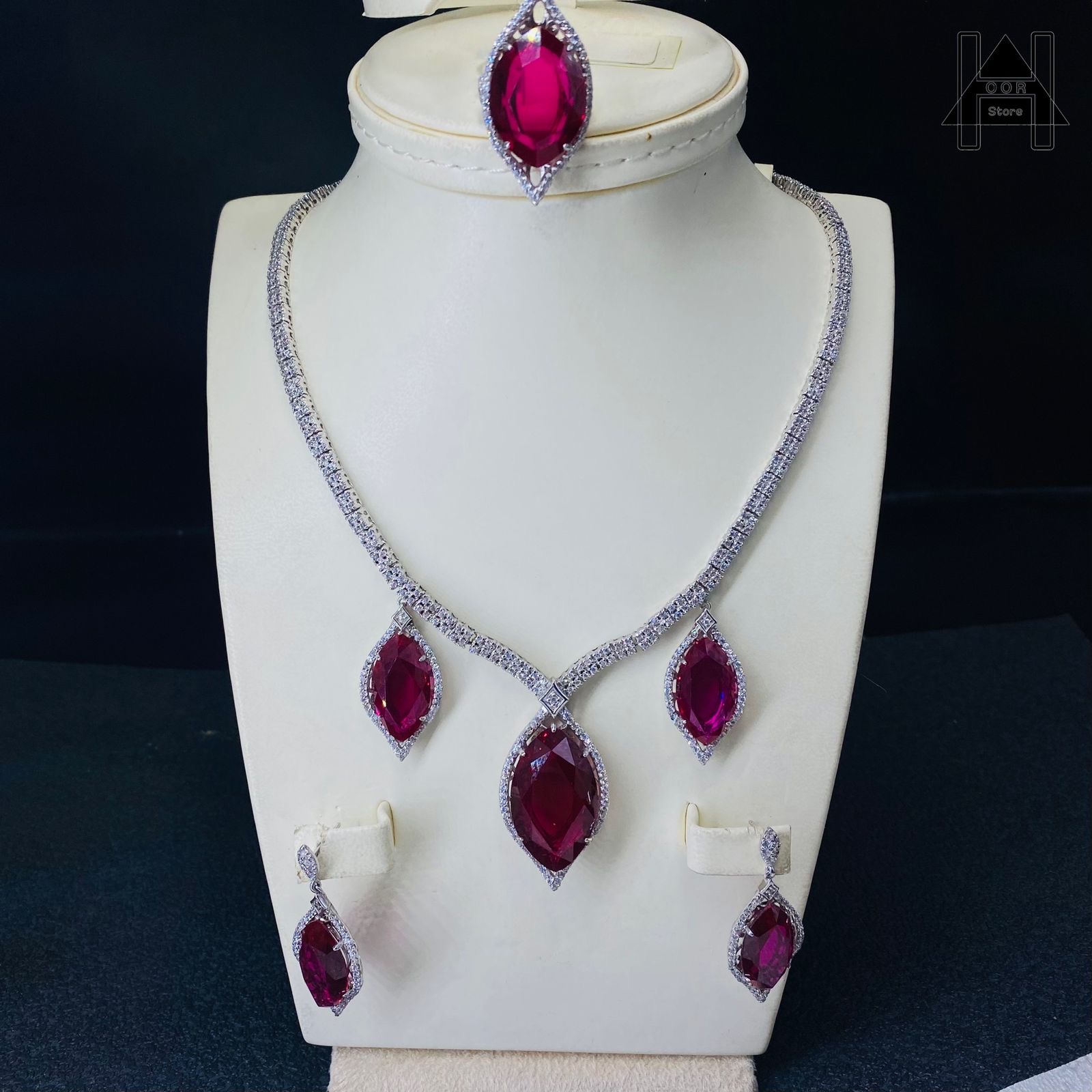 اقدم لكم طقم فضة إسترليني عيار 925 بأحجار ياقوت أحمر معالج ومرصع بفصوص زركون درجة أولى - طقم مميز وفخم . وزن الطقم / 69،6 جرام . الطقم عبارة عن / عقد فاخر وحلق و خاتم مع بوكس فاخر وكيس هدية ???? . السعر / 1044 ريال . شحن وتوصيل مجاني لجميع مناطق المملكة.
