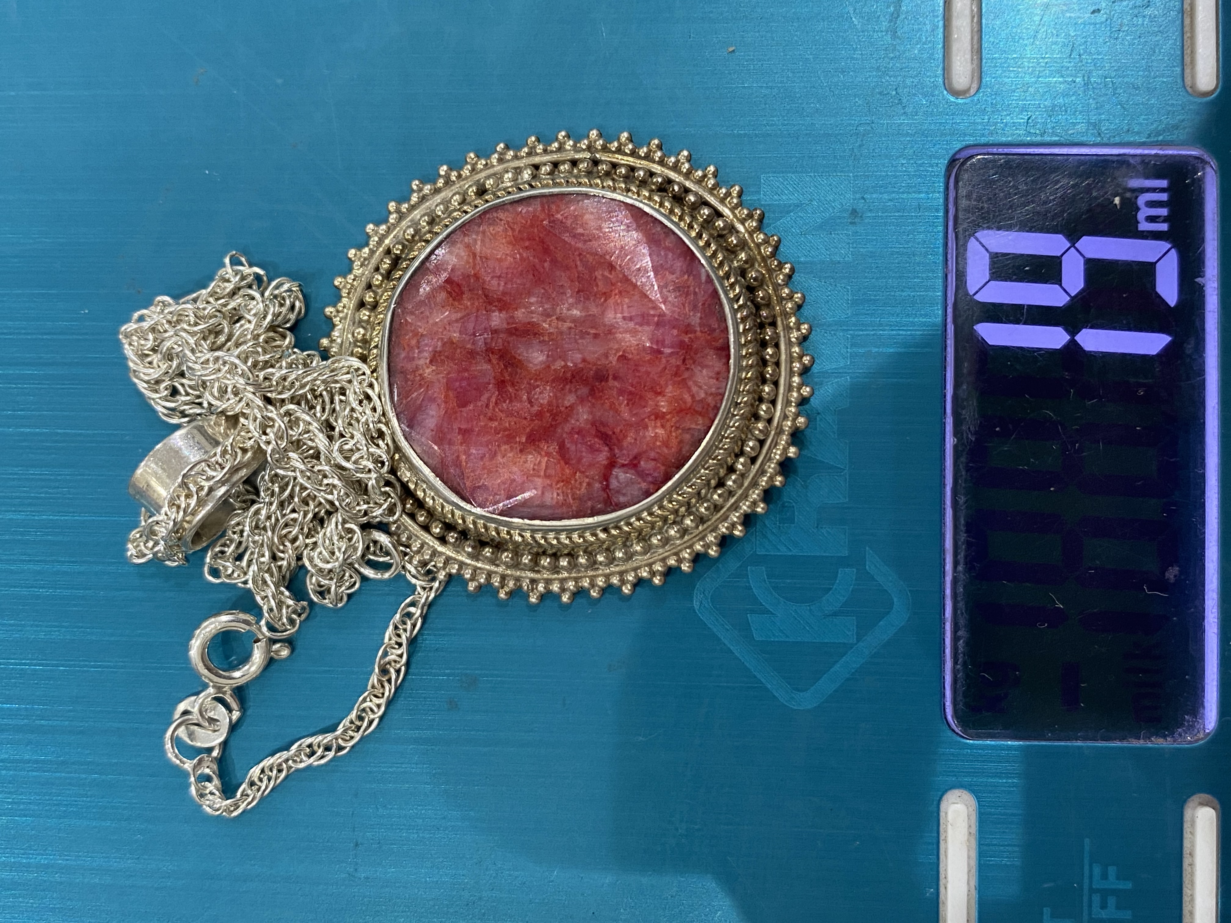 قلادة فضة تفصيل بحجر الياقوت الأحمر ( روبي ) مع سلسلة عيار 925