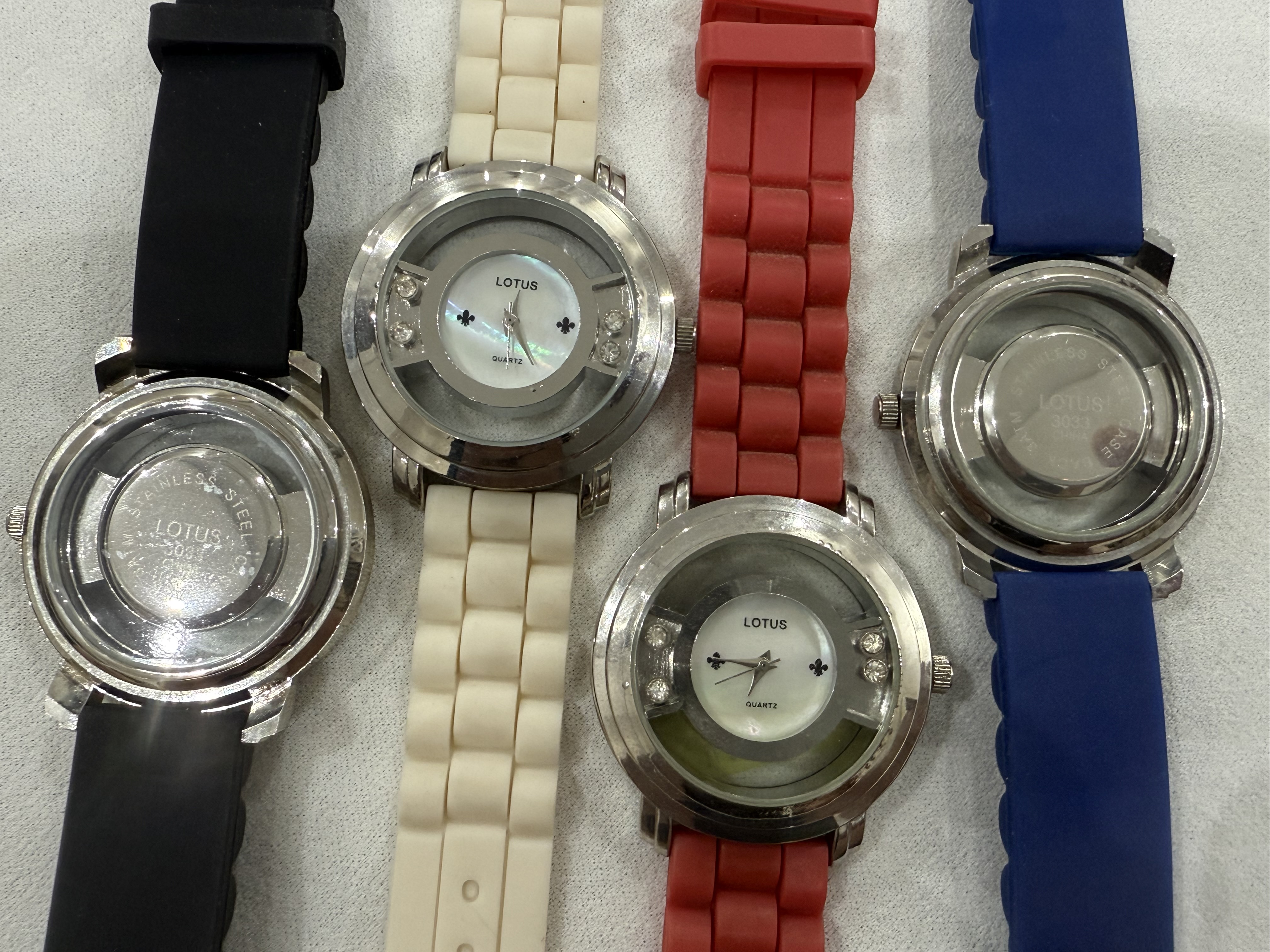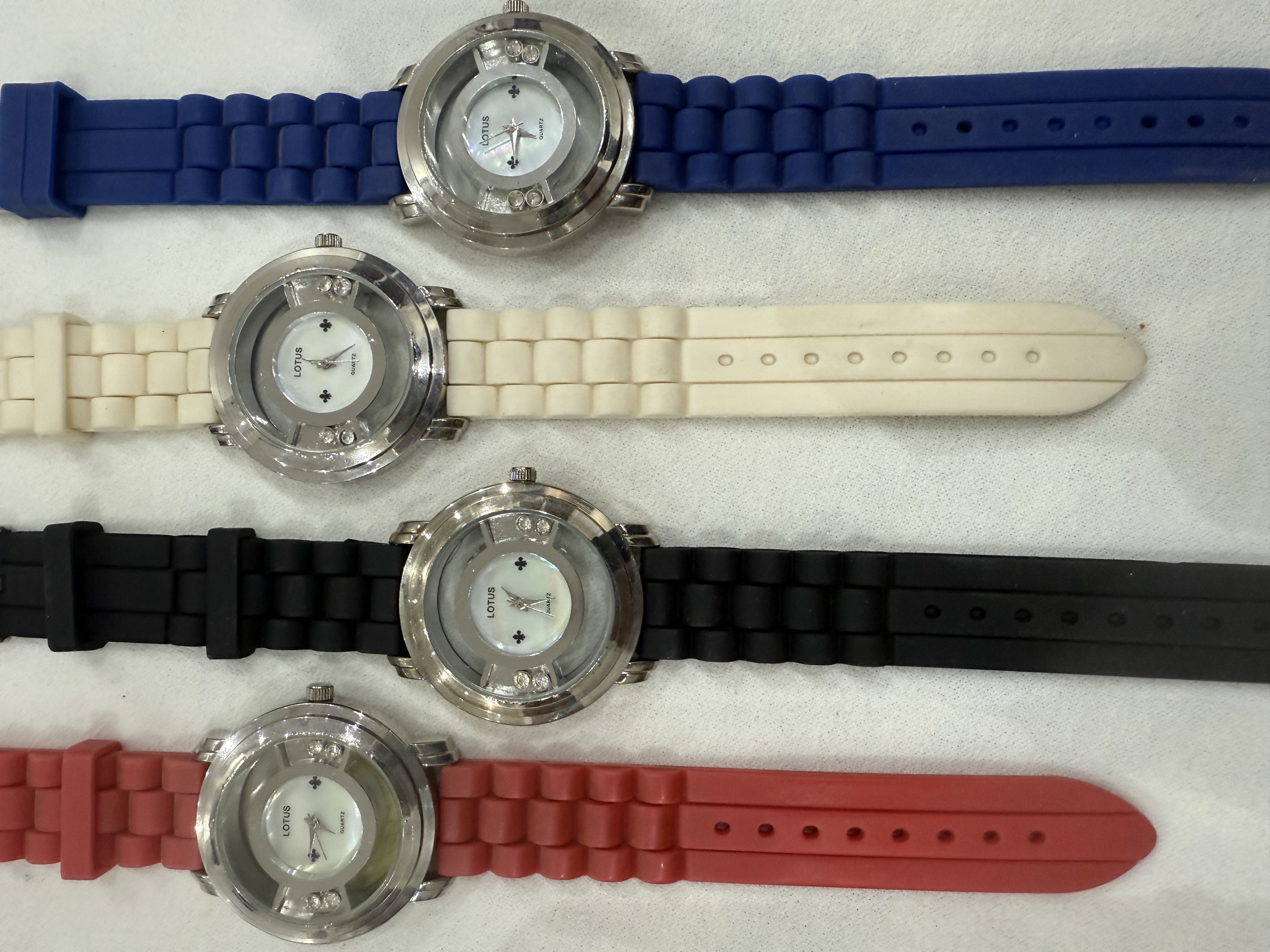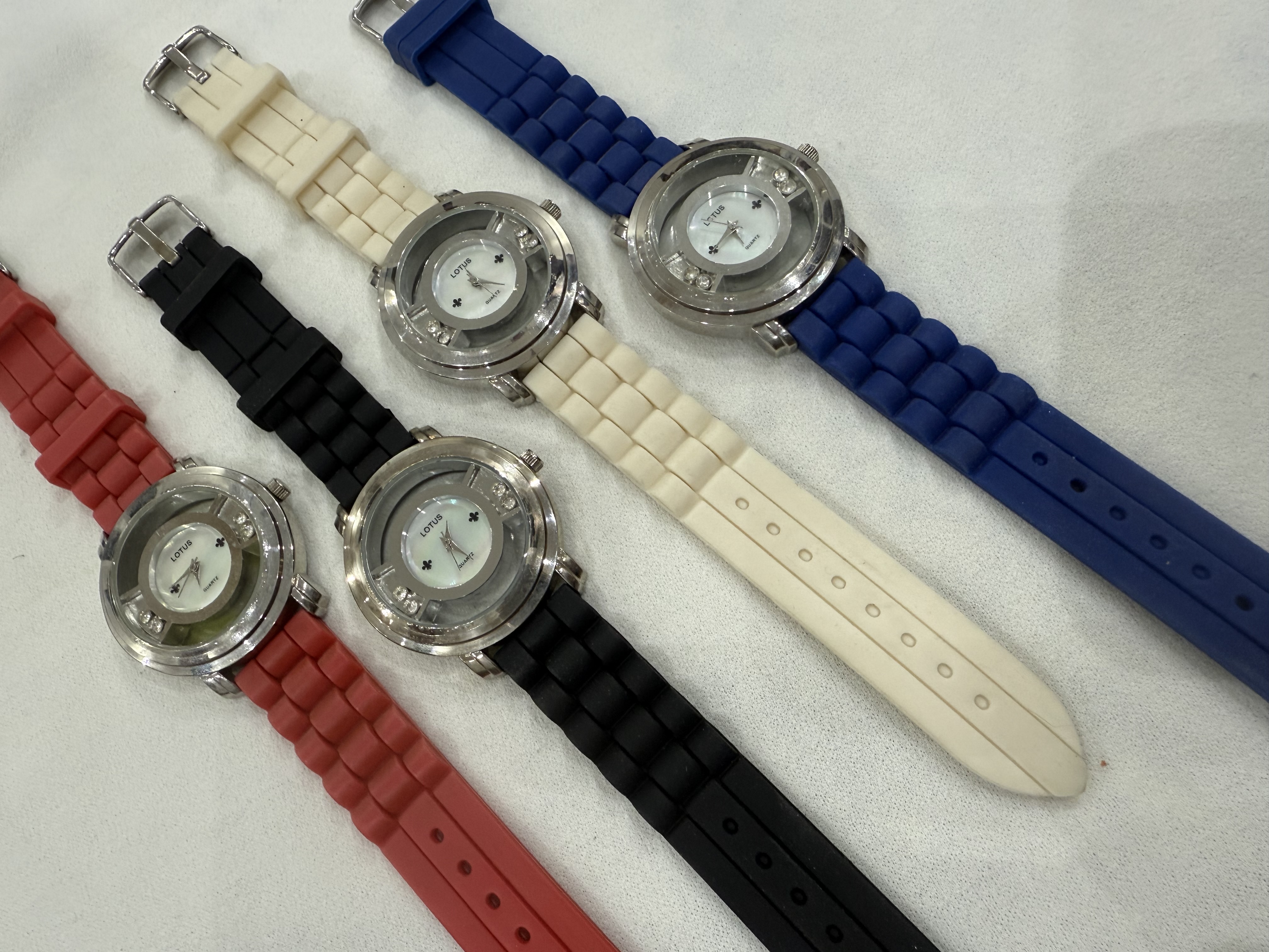اقدم لكم ساعات لوتس LOTOS العصرية والجديدة والعمليه- بأربعة ألوان مختلفة ( اسود و ابيض و ازرق و احمر ) ستانلس استيل بأستيك سيليكون قوي ومتين بميناء بيضاء صدفي بموديل وشكل جديد ومميز. مقاسها / 39مم إلى 42مم . السعر / 150 ريال . عرض خااااااااص / سعر الاربعة ساعات بالألوان المختلفة / 400 ريال . الاسعار شاملة الشحن والتوصيل لجميع مناطق المملكة للباب .