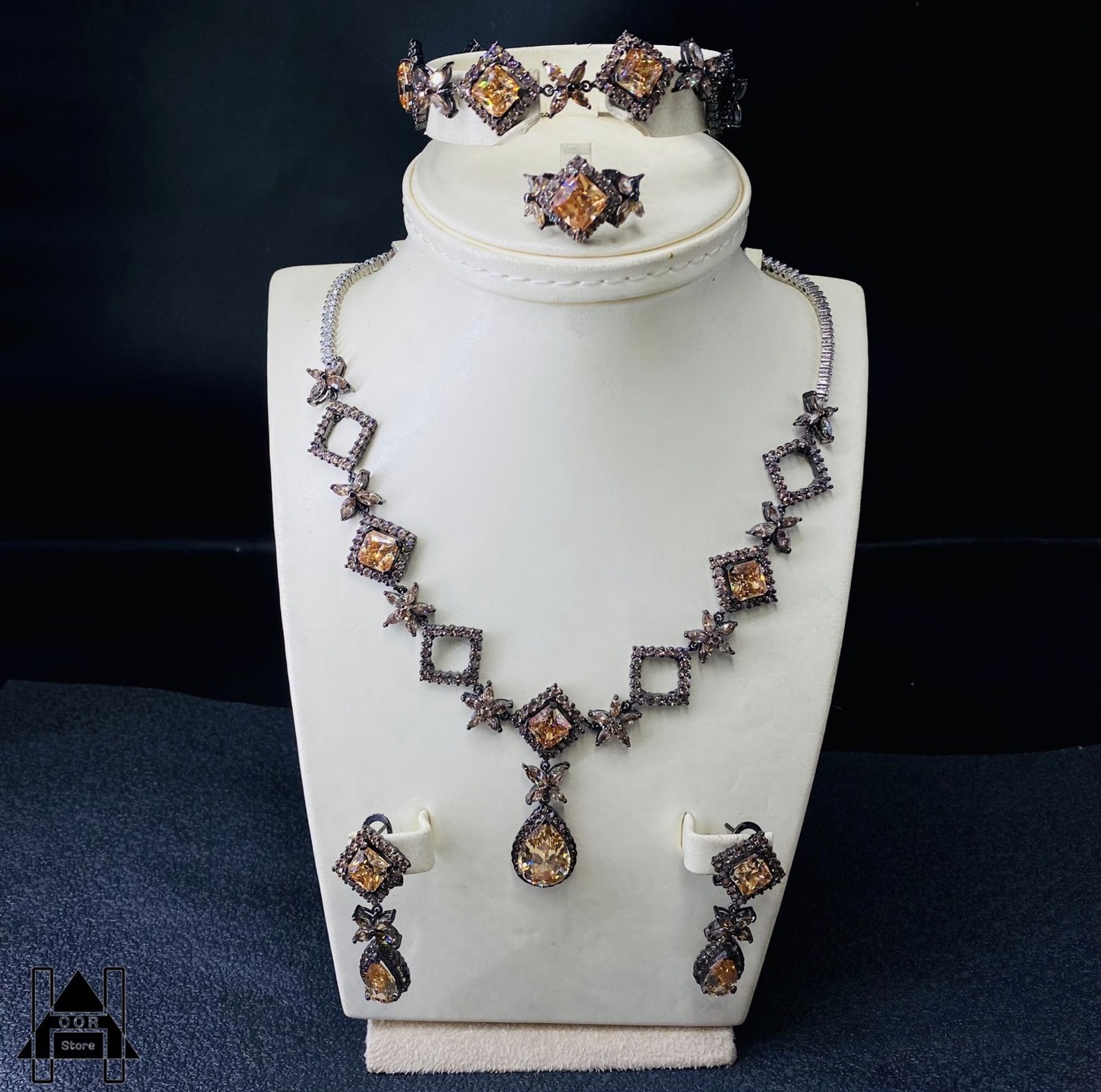 طقم فضة إسترليني عيار 925 عتيق ونادر ومميز وجديد من نينا ريتشي NINA RICCI - بتصميم راقي ونادر يتكون من كريستالات متعددة الالوان والأشكال- لمحبي اقتناء المجوهرات والقطع العتيقة والنادرة والمميزة. يتكون من / عقد فاخر وإسواره وحلق وخاتم مقاس (6) . وزن الطقم/ 96 جرام . الطقم جديد وليس مستخدم .. سعر الطقم / 1958 ريال شامل الشحن والتوصيل لجميع مناطق المملكة للباب.