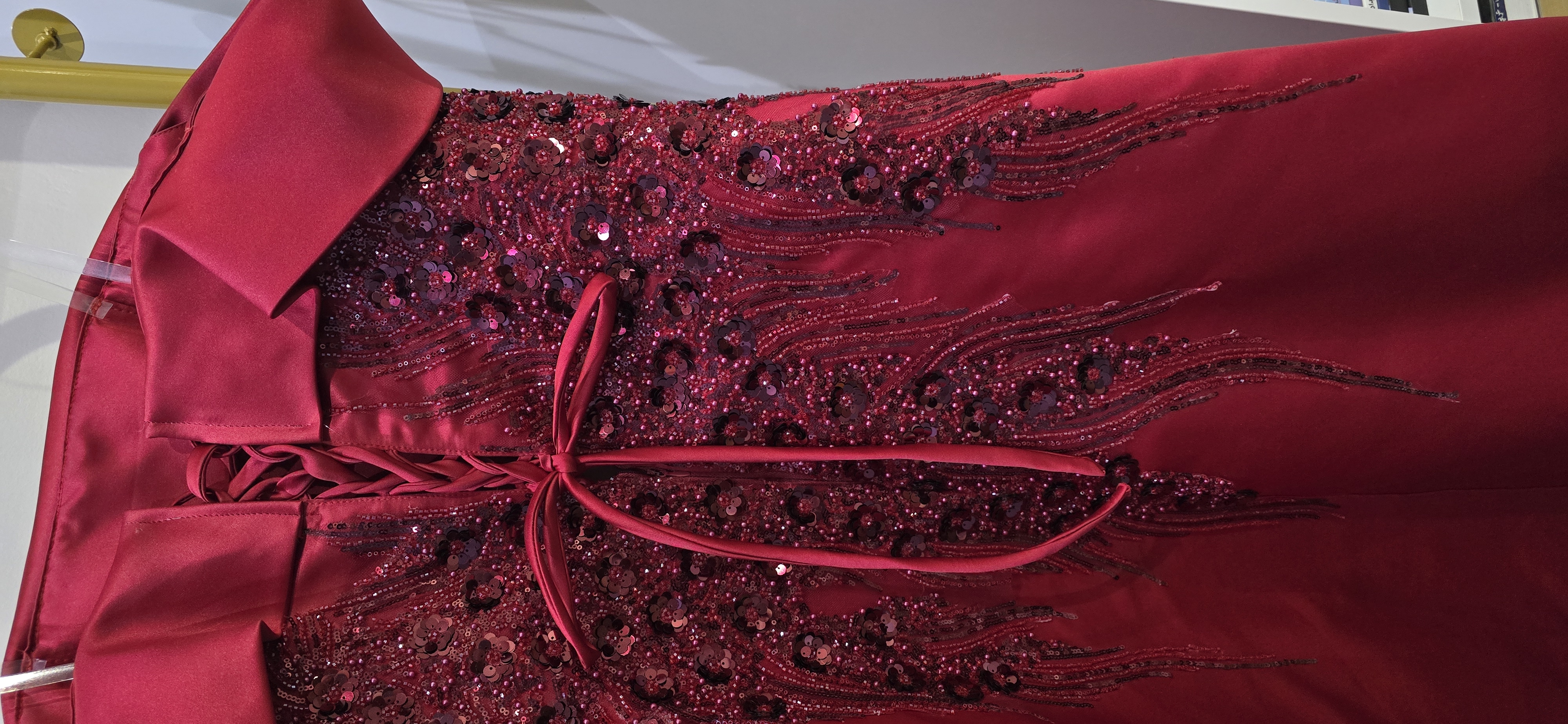 فستان سهرة أحمر بتطريز أنيق من الأمام والخلف نظيف وانلبس مرة وحدة مدة 7 ساعات من الخلف سحّاب وحبال مقاس 2XL والطول يناسب 162 سم وزيادة مع الكعب قابل للتضييق من عند الخصر مرفق صورة أثناء الارتداء لتوضيح موديل الفستان أكثر السعر 700 وقابل للتفاوض مكة وجدة فقط للتواصل: 0560807076