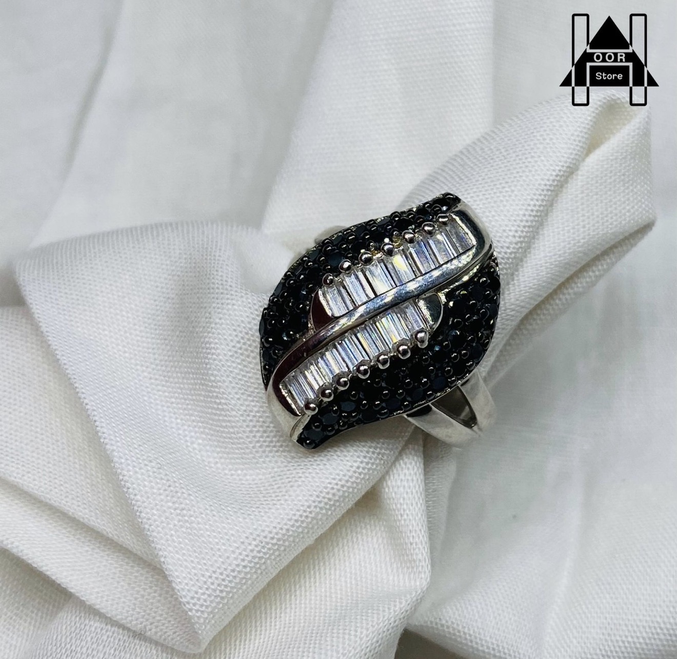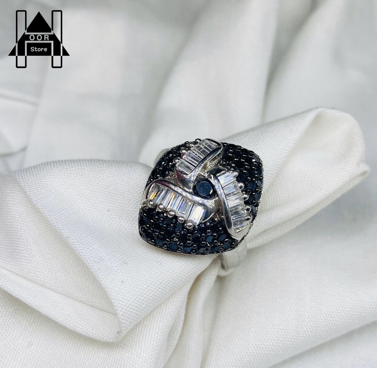 خواتم فضة نسائي إيطالي عيار 925 فاخرة وراقية بعدة أشكال وبفصوص فاخرة باللون الاسود المميز وفصوص مربعة باللون الأبيض - جديدة سعر الخاتم / 150 ريال . عرض خااااااص / سعر الاربع خواتم بالأربع اشكال / 444 ريال . الاسعار شاملة الشحن والتوصيل لجميع مناطق المملكة للباب .