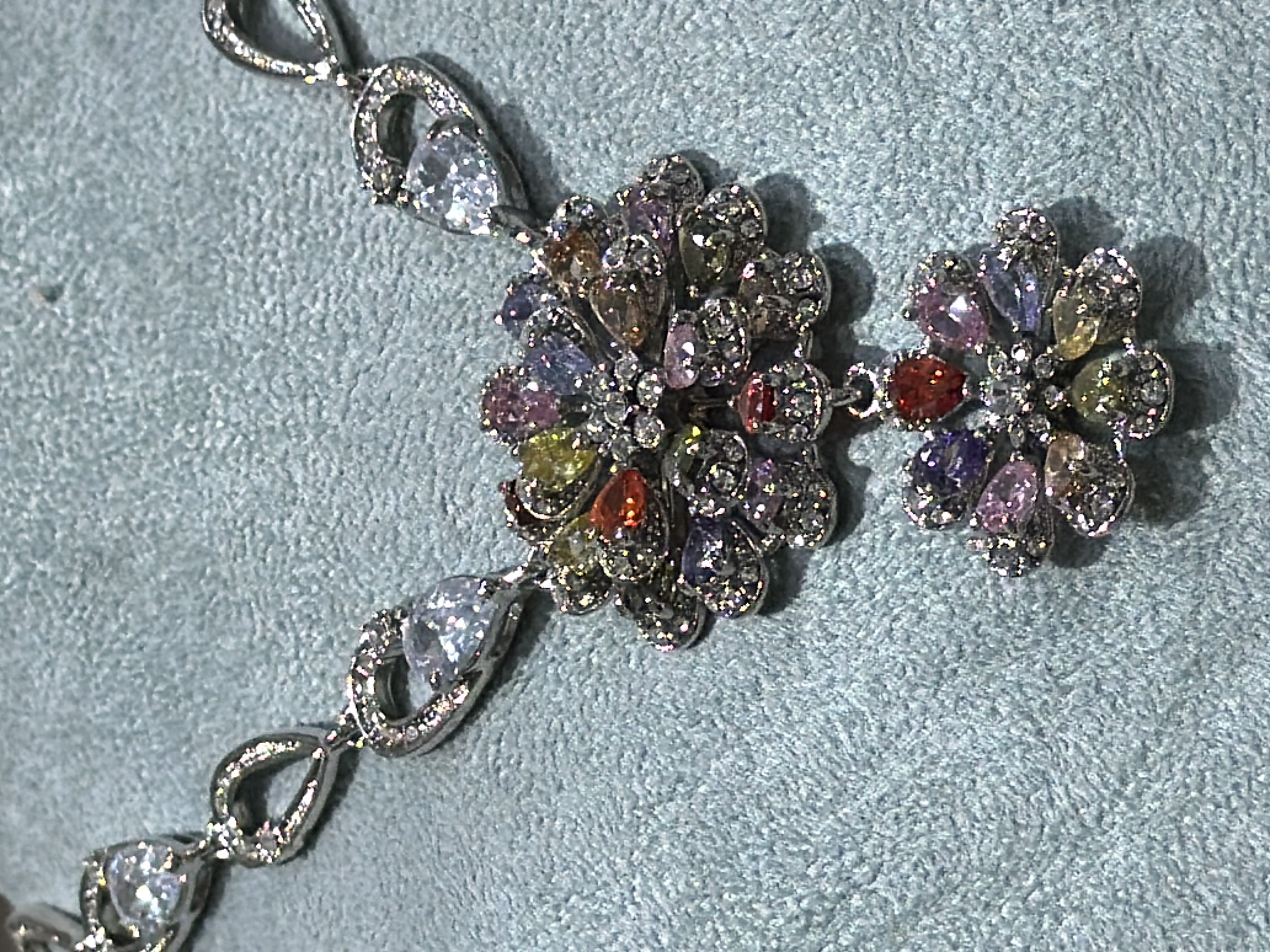 اطقم إكسسوار فاخرة وراقية على شكل وردة ذهبي وفضي بفصوص زركون ملون - مكون من عقد وحلق - الطقوم جديدة - وبسعر منافس .