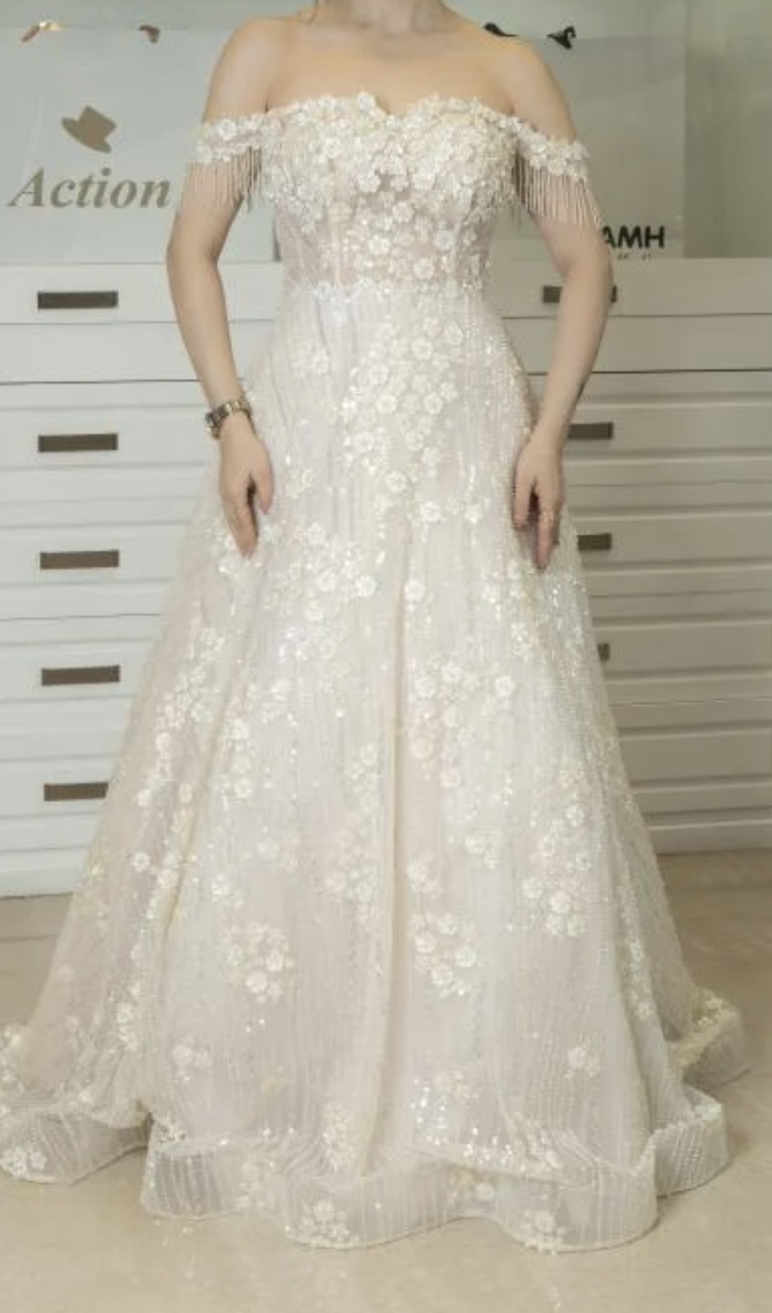 فستان فخم جدا بيج وشغل مضبوط للبيع شريته 1140 وببيعة 1100