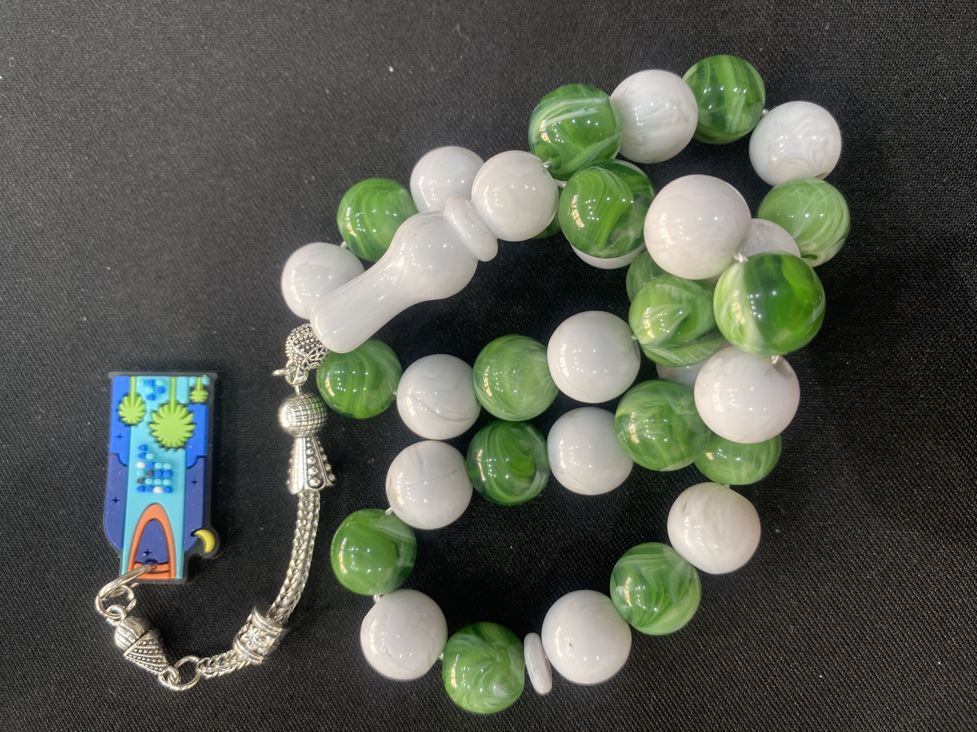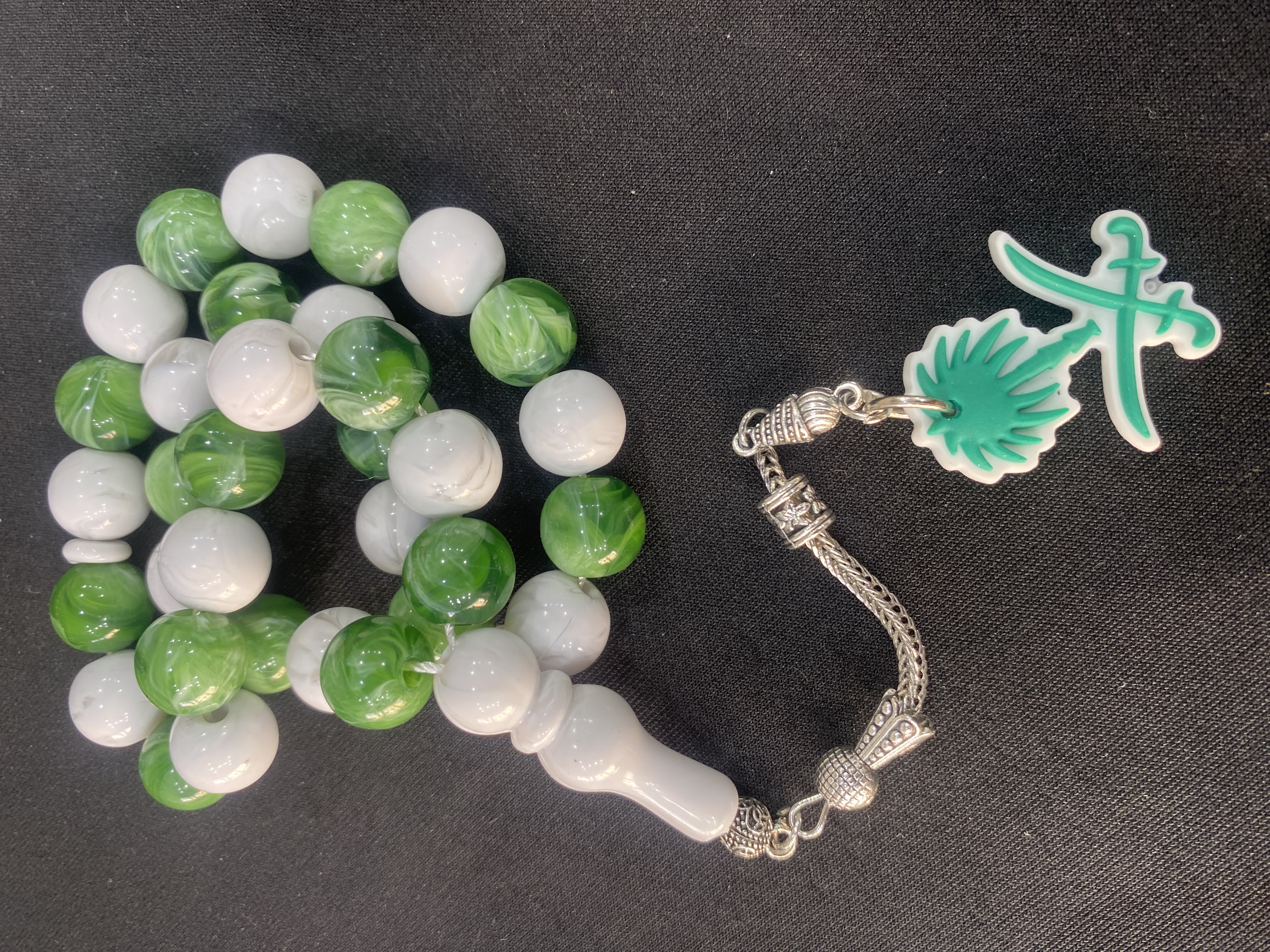 سبح بكلايت مميزة باللون الاخضر والأبيض بعدة اشكال تنفع للإهداءات او التوزيعات مع بوكس فاخر - يوجد كميات .