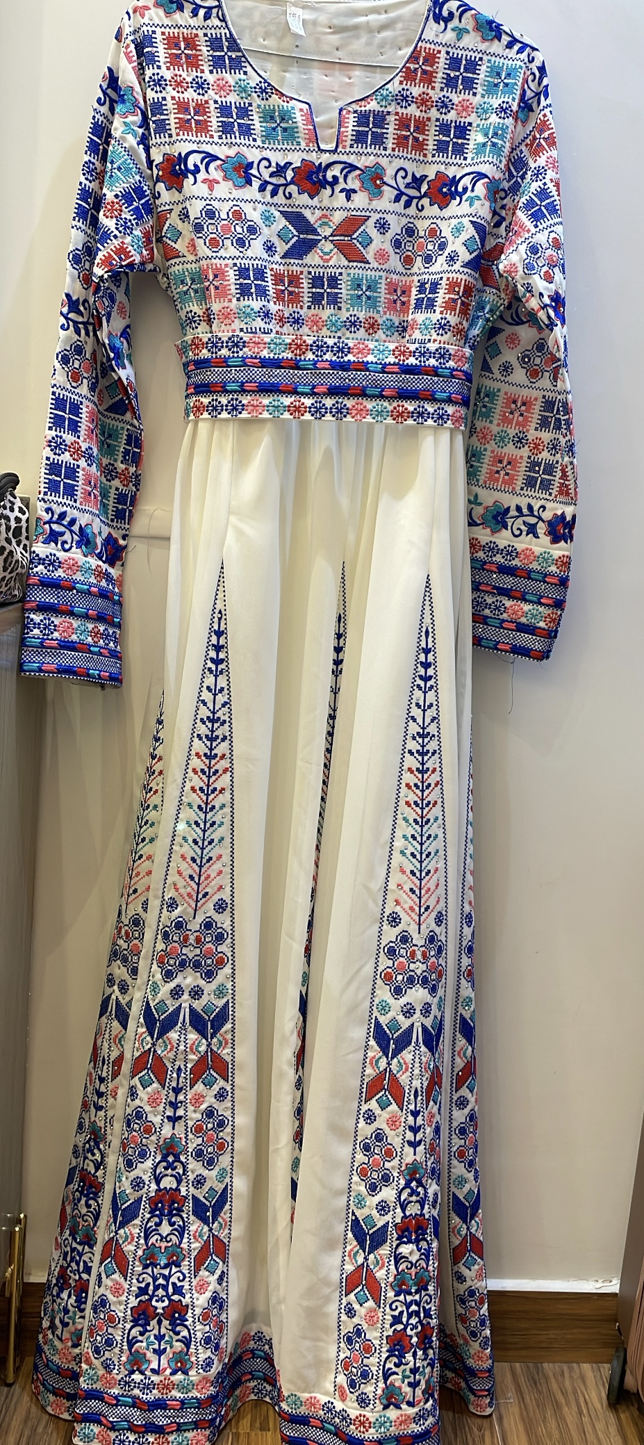 فستان مقاس L مطرز تصميم سوري جديد لم يستخدم سعر البيع ٤٥٠ سبب البيع غلط في المقاس