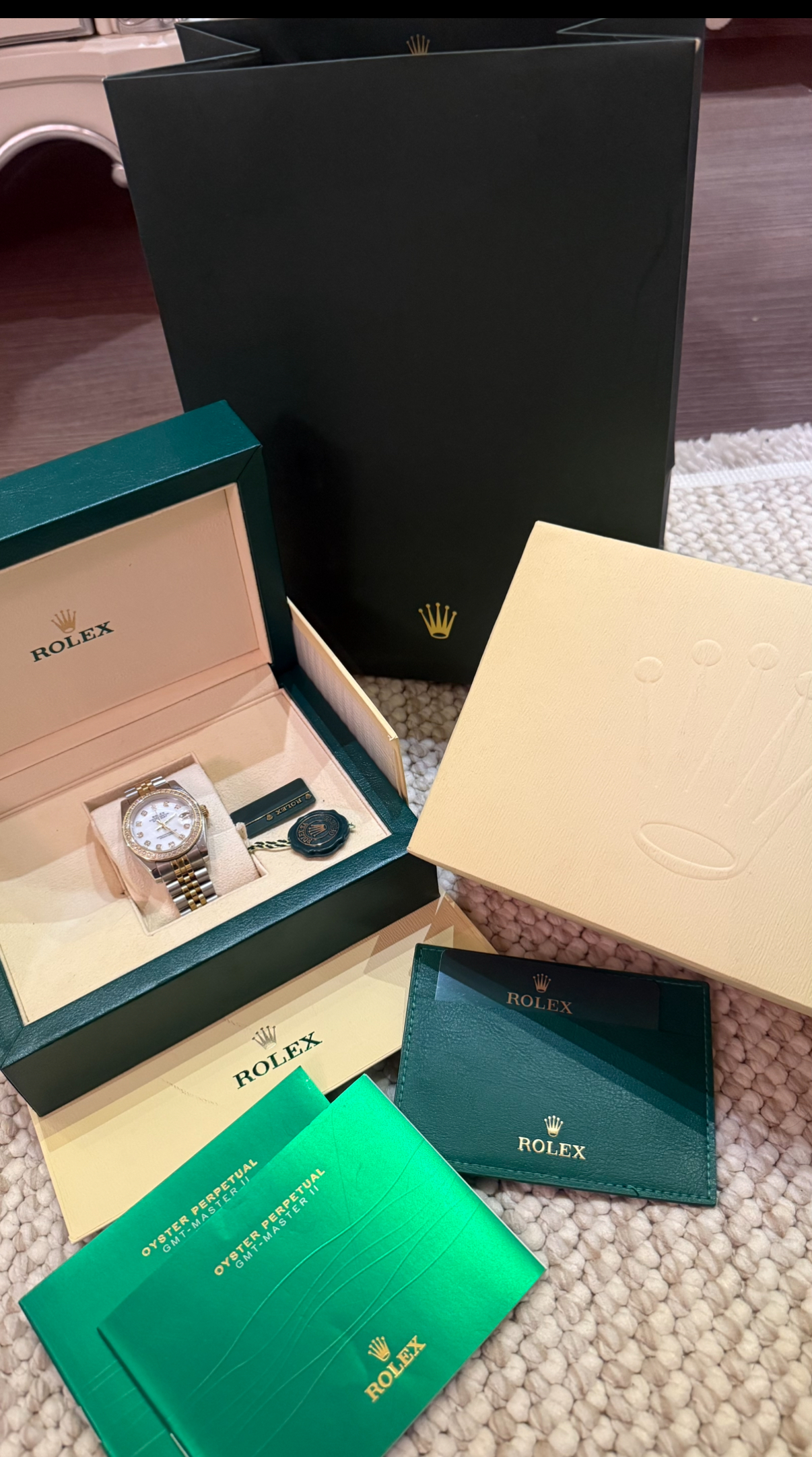 ساعة روليكس شبه جديدة مقاس 31 ميناء صدفي ماستر كواليتي جودة عالية و شغل نظيف مرررة ما تفررررق أبد عن الأصلية استعمال خفيف جدًا يمكن ما يتعدى ثلاث مرات ققط بالبوكس و العلبة و كل الملحقات كما هو ظاهر في الصورة سعر الشراء ثلاث الاف و خمس مية البيع بالف و ثمان قابلة للتفاوض المعقول
