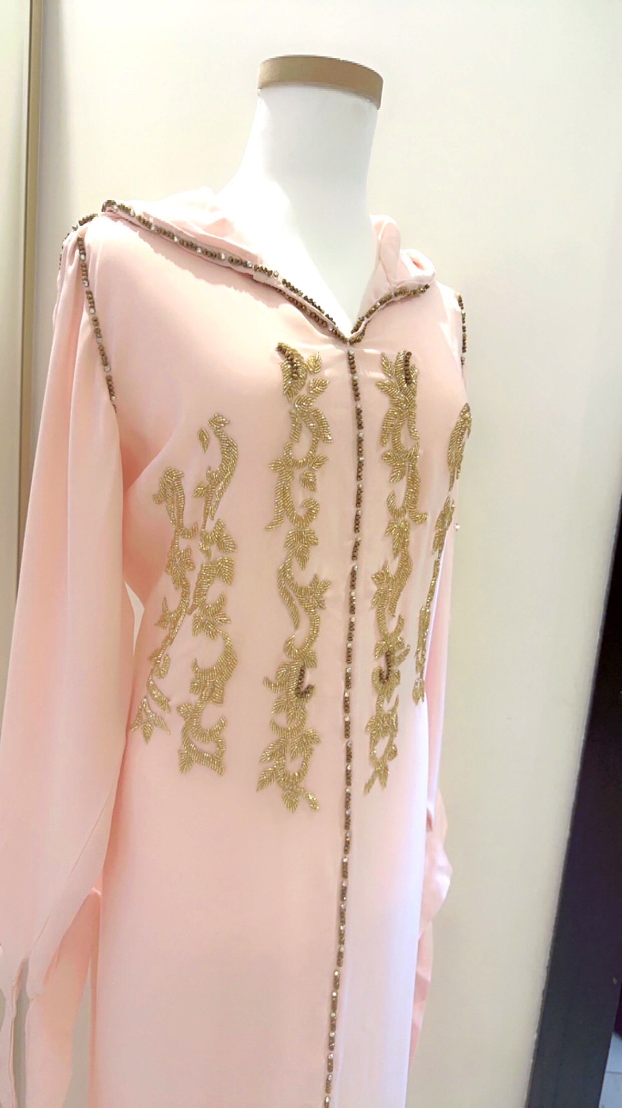 قفطان مغربي تطريز يدوي يباع ب450 باقي منه ثلاث حبات لون وردي اثنين ولون اصفر حبه ب120 للواحد